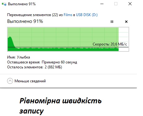 Невисока швидкість запису біля 23 mb/s, однак це найкращий показник з серії ume-3 GoodRam