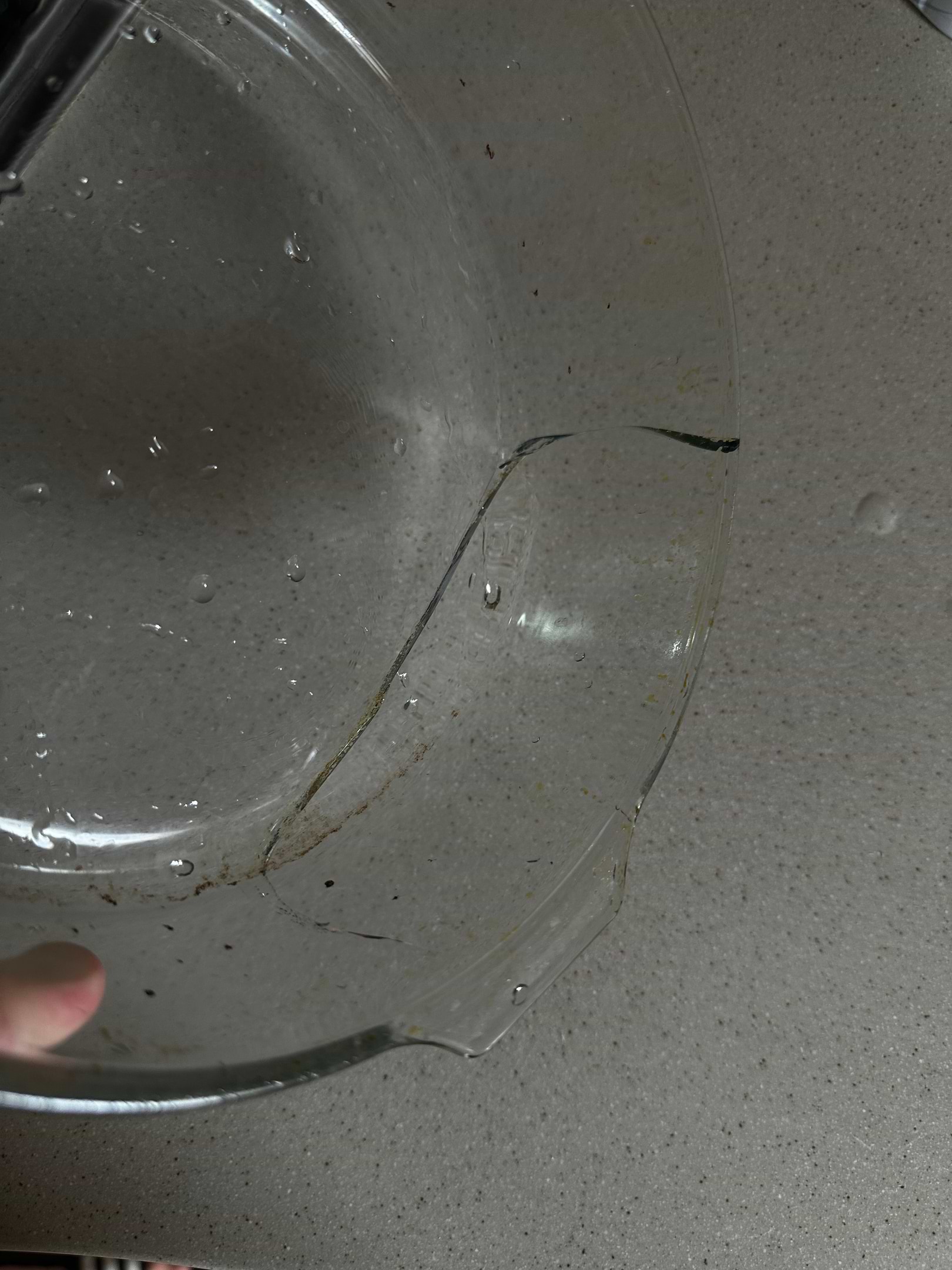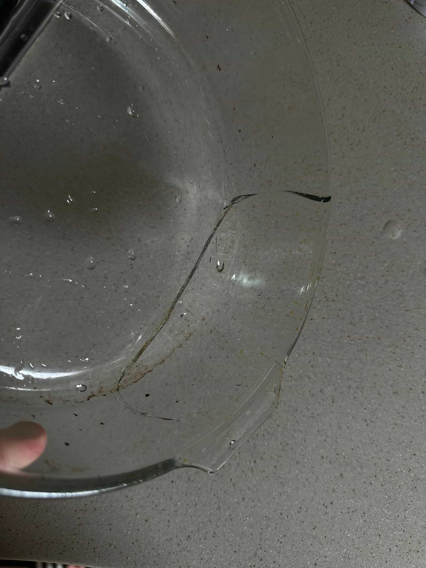 Якість погана, можливо отримала одиницю з браком. Тріснув в духовці, видно, що це не від падіння, бо шматок би відколовся.