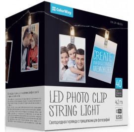 Гірлянда лінійна Colorway 40LED, 4.2м, з прищіпками для фото, USB (CW-LCP-40L42BU)