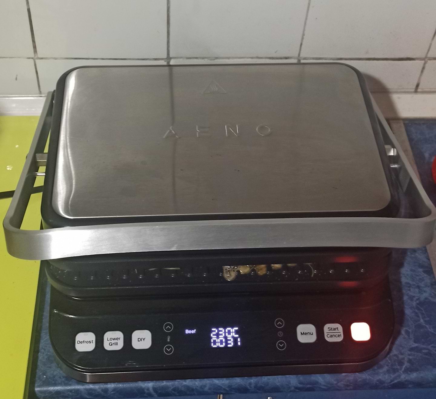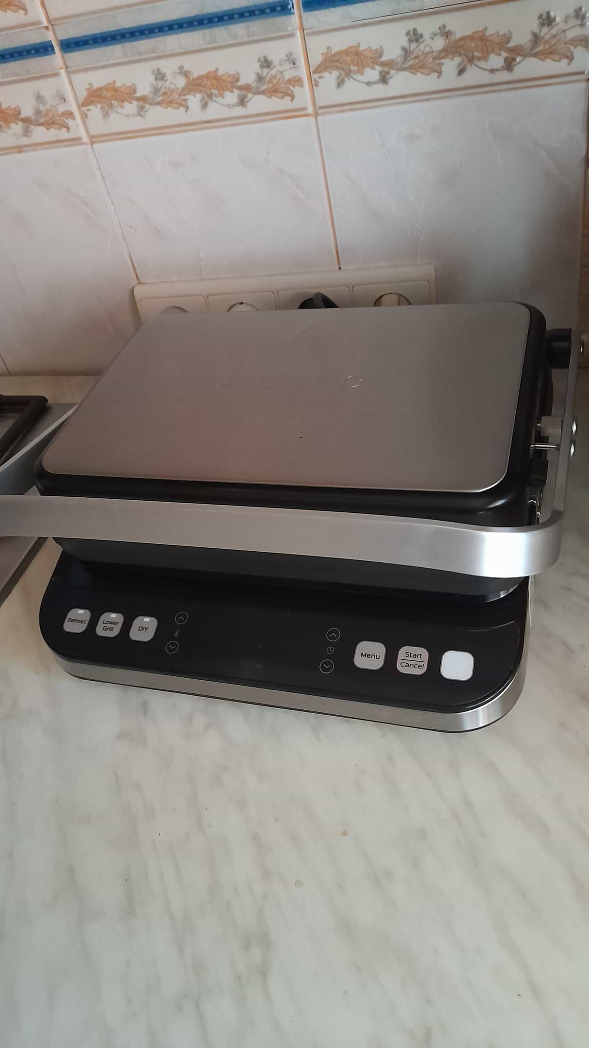 Стильно виглядає, опції мені сподобались, тому й придбала його. Потужність класна, гріється швидко, автоматично вимикається, коли закінчується програма, я зазвичай, вмикаю автопрограму з м'ясом чи рибою і займаюсь своїми справами, потім приходжу, коли вже гриль звук подасть. Трохи скептично відносилася до розморожування, але ця функція непогана, декілька разів користувалася, піде.