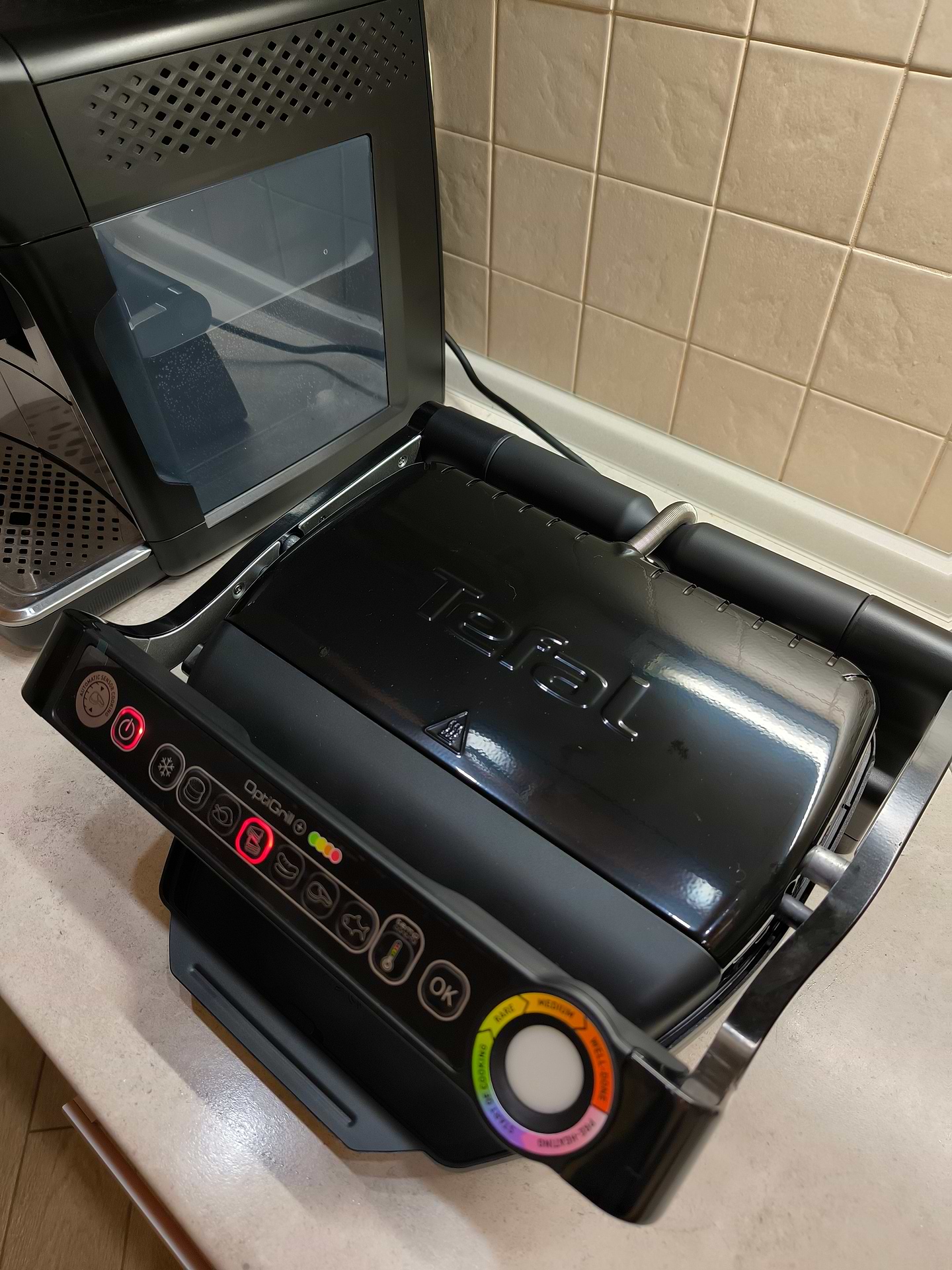 Довго вибирала яку гриль купити та йшла в Комфі за іншою тефалькою, але консультант вмовив на цю, дуже гарно виглядає, і чорний колір мені подобається! По роботі нарікань не має, кожні вихідні у нас свято з грилем! Дуже приємна річ в господарстві!