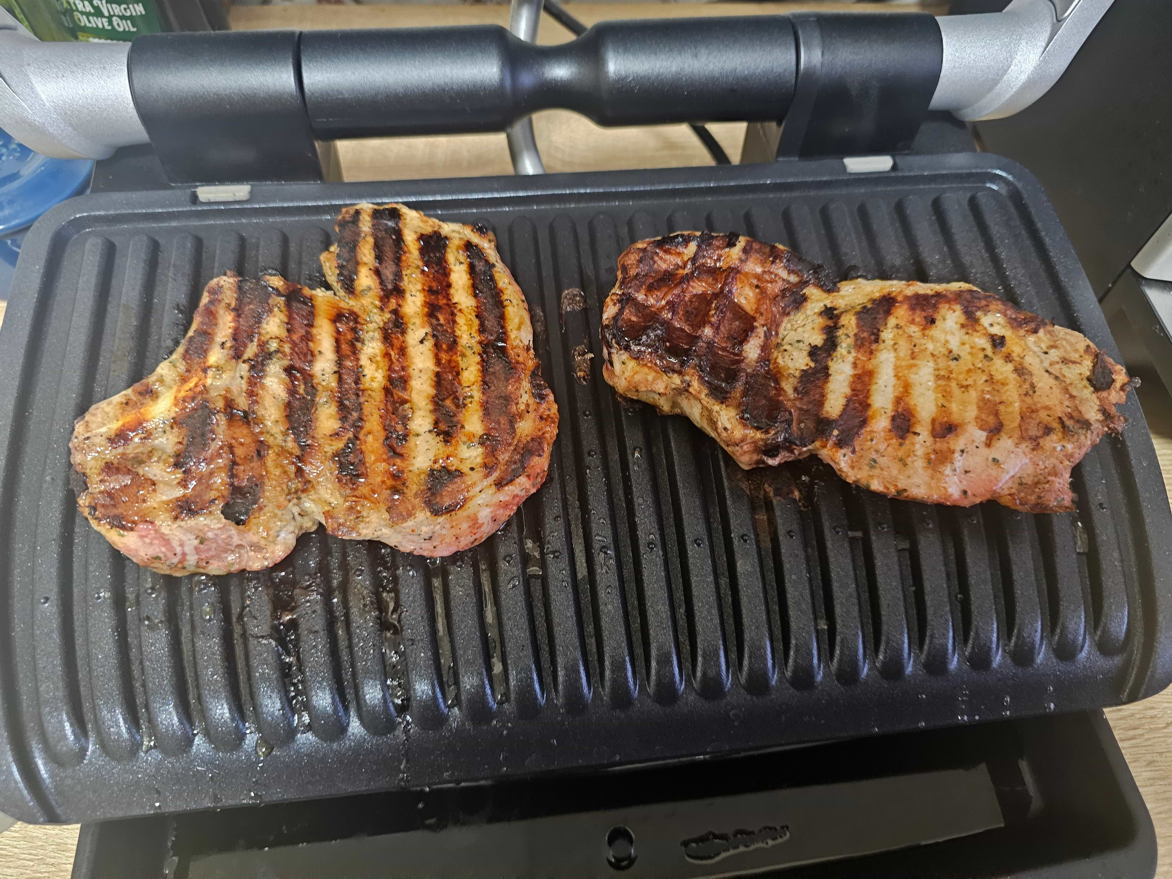 Чудовий гриль. Зручний, пластини легко знімаються, щоб помити. Є багато автоматичних програм, що полегшує приготування. Стейк вийшов соковитим і не пересмаженим. Овочі теж смачні ( готували баклажан і шампіньйони). На ручному режимі готували нагетси при температурі 180 градусів по 5 хв з кожної сторони (заморожені). Вийшли соковиті.