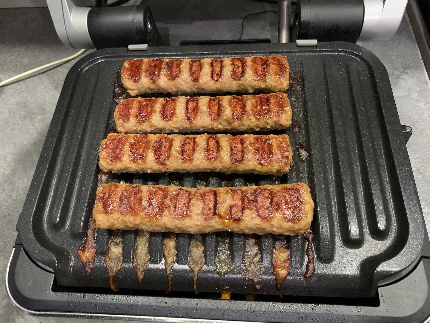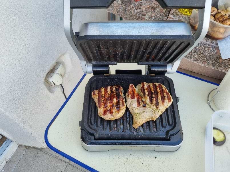 Крутой гриль. Самое главное что следить не зачем не нужно. Включил, положил стейк и ждёшь когда пропикает на нужной степени прожарки. И не нужно ни какого масла добовлять. 2 толстых стейка из шеи свинной готовятся 10 мин. Вобщем рекомендую. Съёмные пластины отлично моются в посудомойке...