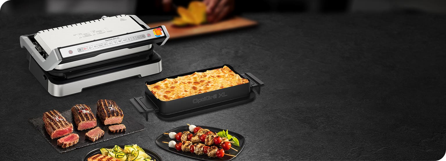 Приготуйте повноцінну вечерю витрачаючи мінімум часу та зусиль. Відкрийте гриль на 180 градусів для смаження основної страви, та одночасно використовуйте форму для випікання для приготування гарніру. Змінюйте температуру приготування на 4х позиційному термостаті що розташован зниз, та насолоджуйтеся вечерею з OptiGrill.