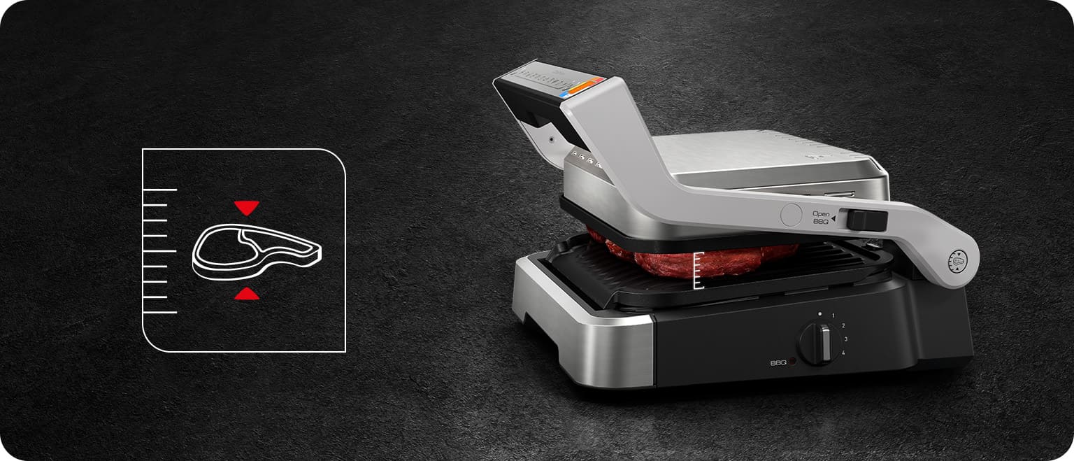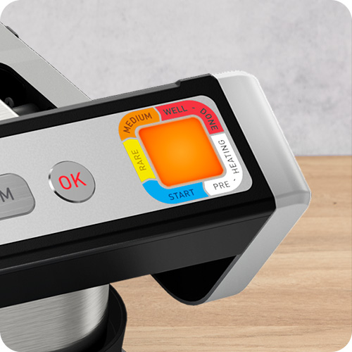 Розумний гриль та режим Барбекю. Автоматичне вимірювання порції і товщини. Новий дизайн індикатору рівня приготування.