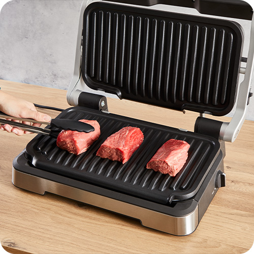 Почекайте 5-10 хв, поки поверхня нагріється та покладіть м’ясо на OptiGrill