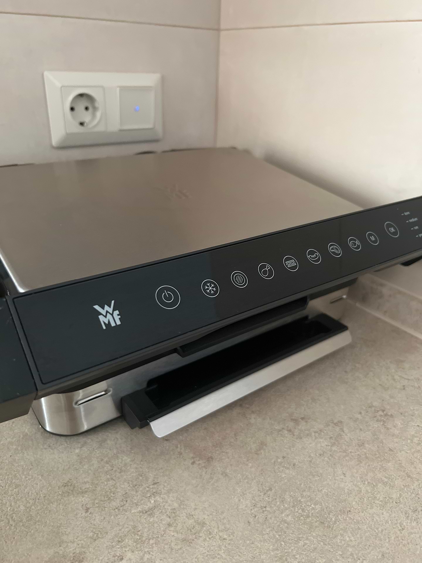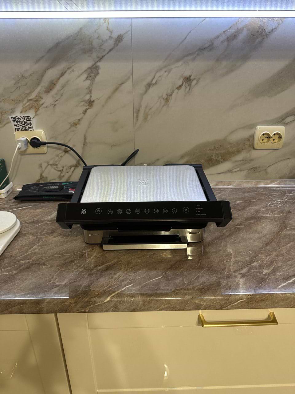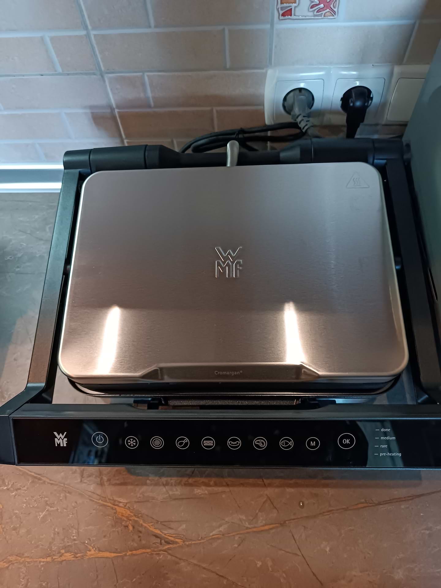 Гриль чудовий, але є один нюанс, працює лише напряму через автомат, якщо розетка йде через пзв вибиває світло.