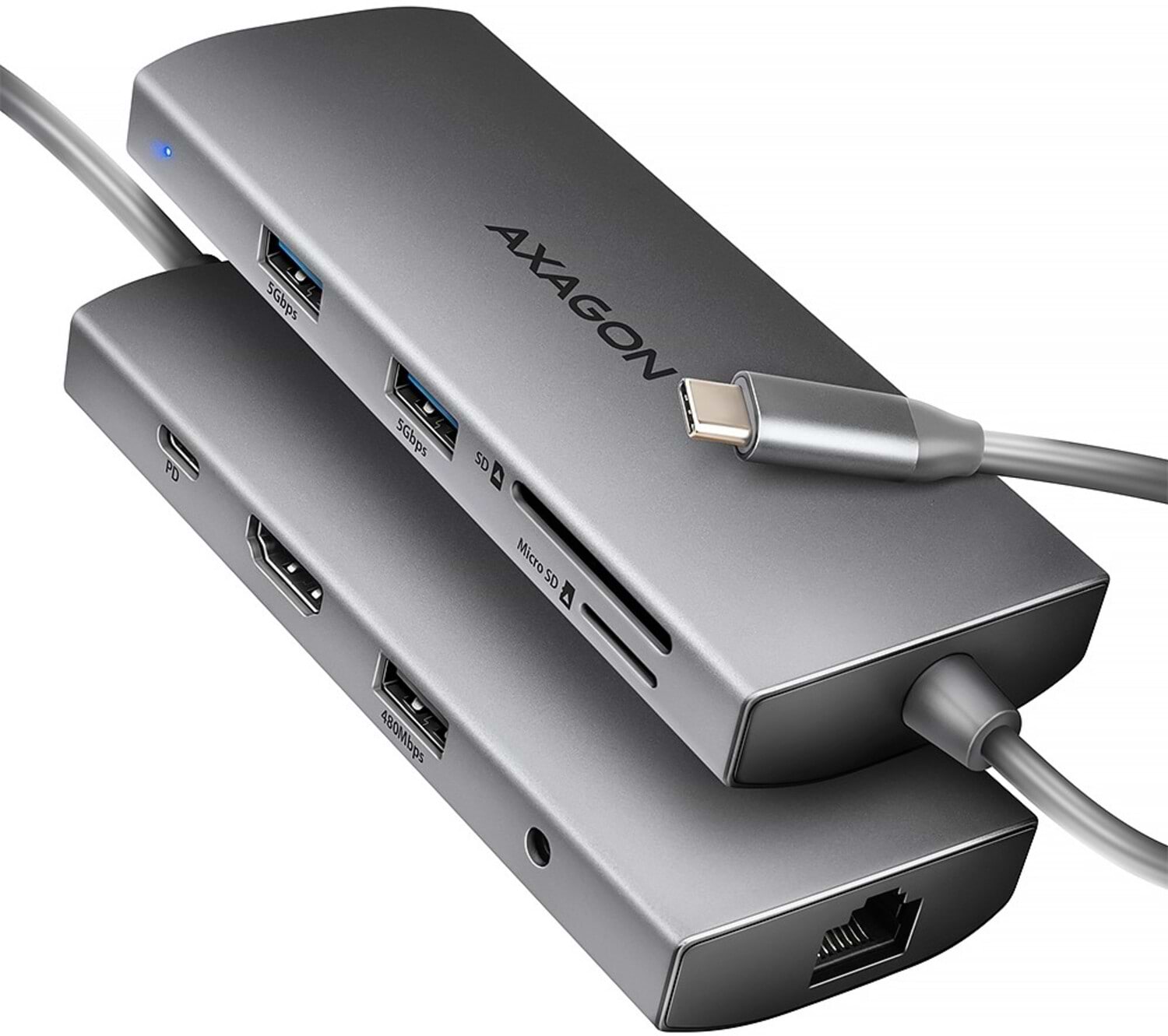 Хаб USB AXAGON USB-C 5Gbps 9in1 Grey (HMC-8HLSA)