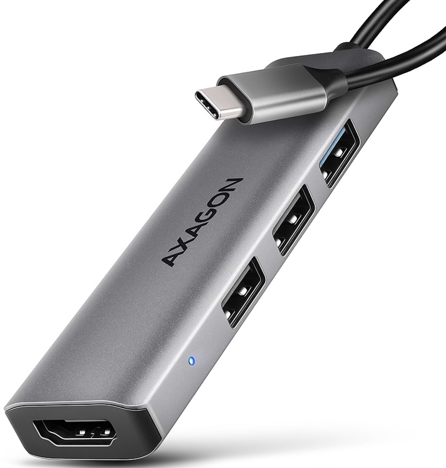 Хаб USB AXAGON USB-C 5Gbps STARTER 4in1 Grey (HMC-H3A)
