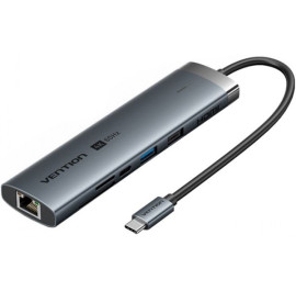 Хаб USB Vention USB3.2 Type-C HDMI/USB3.0/USB2.0/RJ45/SD/TF/PD 100W (TGUHB)