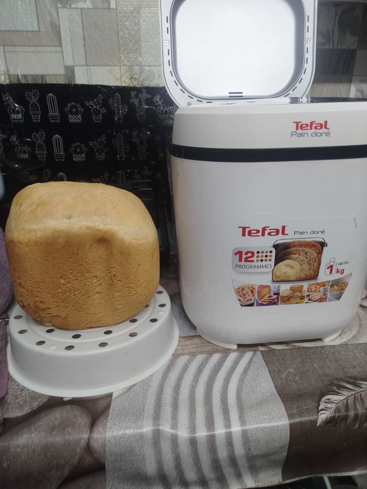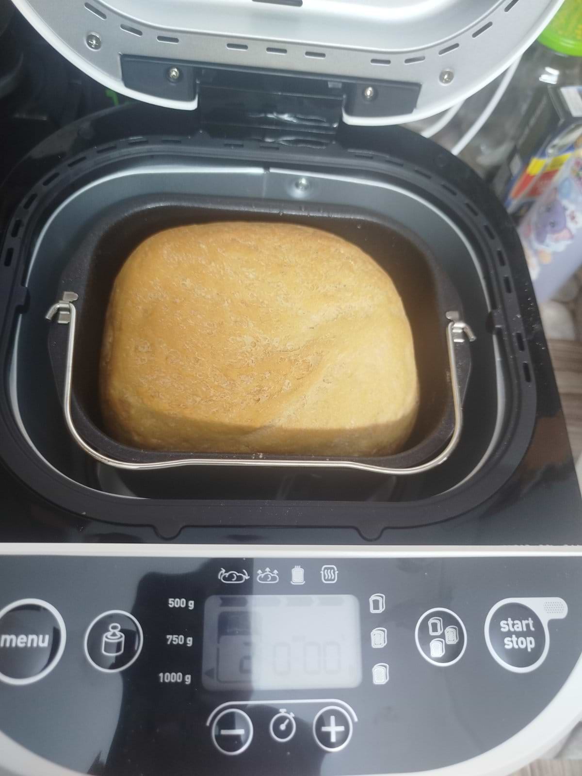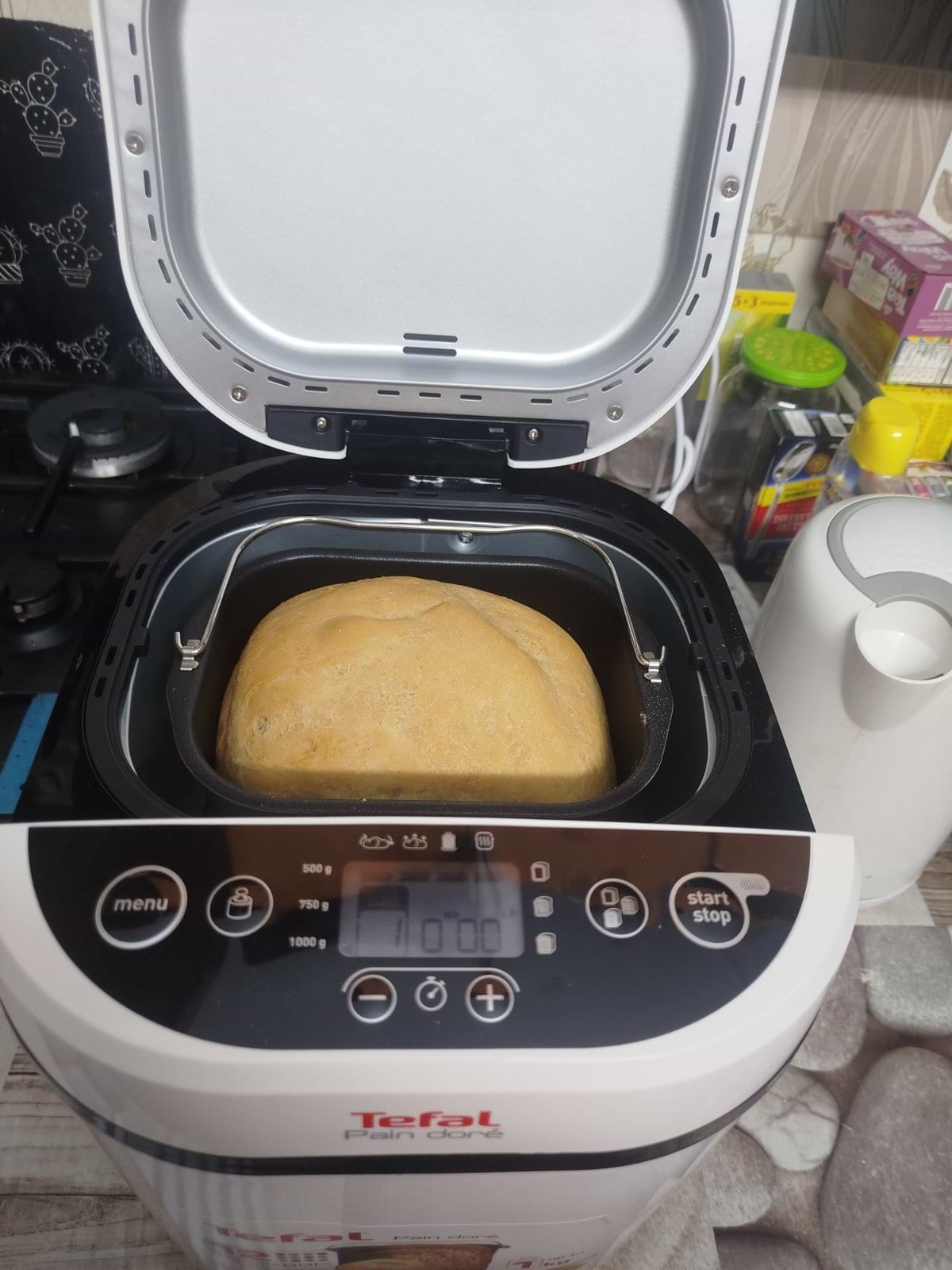 Хлібопічка просто супер,не втрималися відразу почали знімати пробу,в наявності є книга рецептів,спекли класичний хліб на функції 1,фото приклав на хлібопічці видно 1,середня рум'яна сскоринка всі інгредієнти клали за рецептом окрім сухого молока -його просто не було у нас вдома-3 години і вуаля просто красень.Покупкою задоволені всією родиною .На наступний день зпекли французький хліб програми 2, також все клали по рецепту у книзі, також 3 години випікає і також красень ,фото прикладу на хлібопічці видно 2.І що саме мені сподобалося що верхушка добре і гарного пропікається.Дякуємо Хлібопічці Tefal.Усім раджу.
