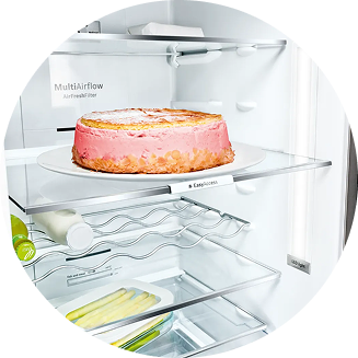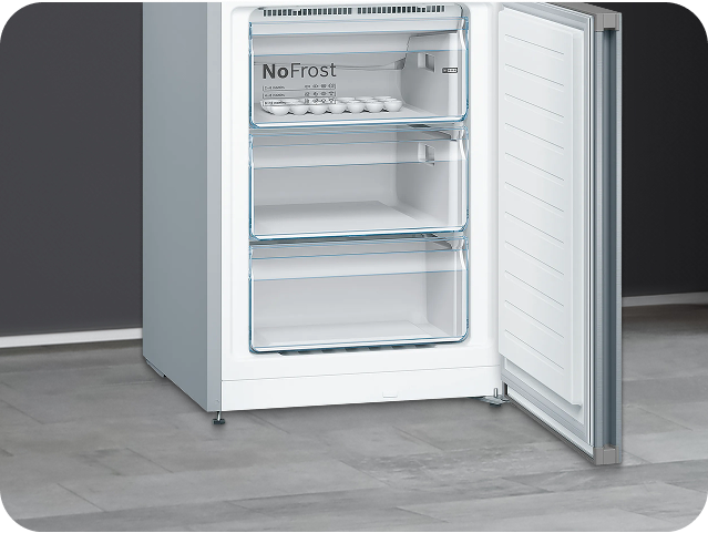Головна деталь будь-якого холодильника, що відповідає за умови зберігання продуктів, — це компресор. Тут виробник надає на нього гарантію терміном 10 років. Інверторний тип компресора забезпечує енергоефективність, підтримання стабільної температури і відсутність шуму під час роботи, що важливо за наявності маленьких дітей. Загальний обсяг KGN39VL316 становить 366 л, з них 279 л припадають на холодильну камеру і 87 л — на морозилку. Ручки агрегату розташовані вертикально в прихованому варіанті розміщення. Для зручності користування, залежно від місця встановлення, двері можна переважувати на будь-який бік. Полиці тут виконані із загартованого скла. Матеріал дверей — метал.