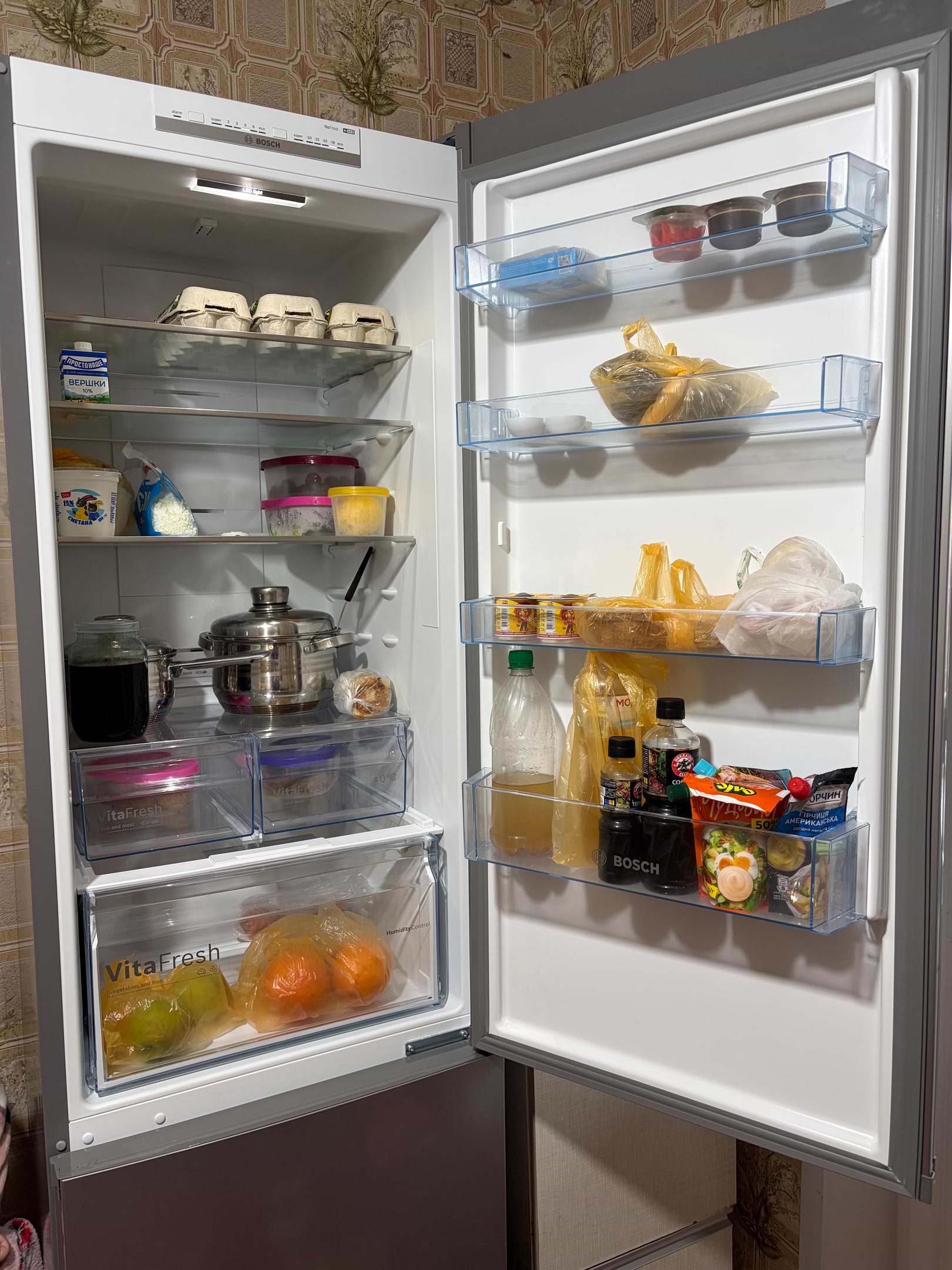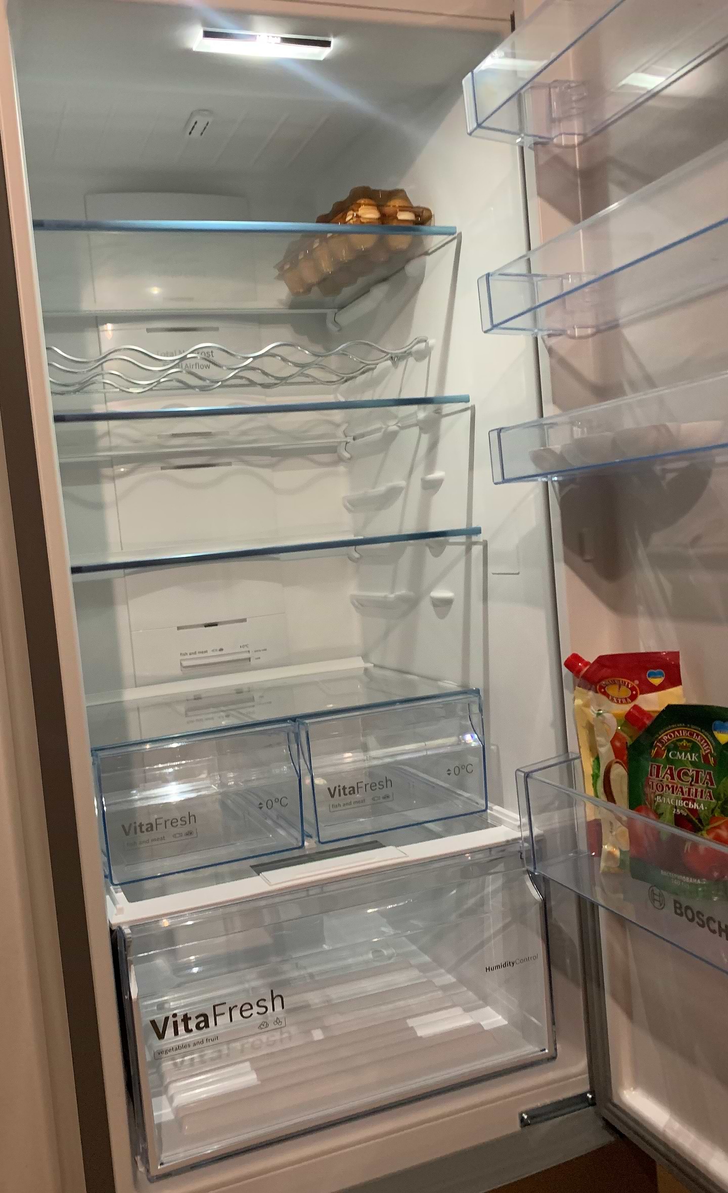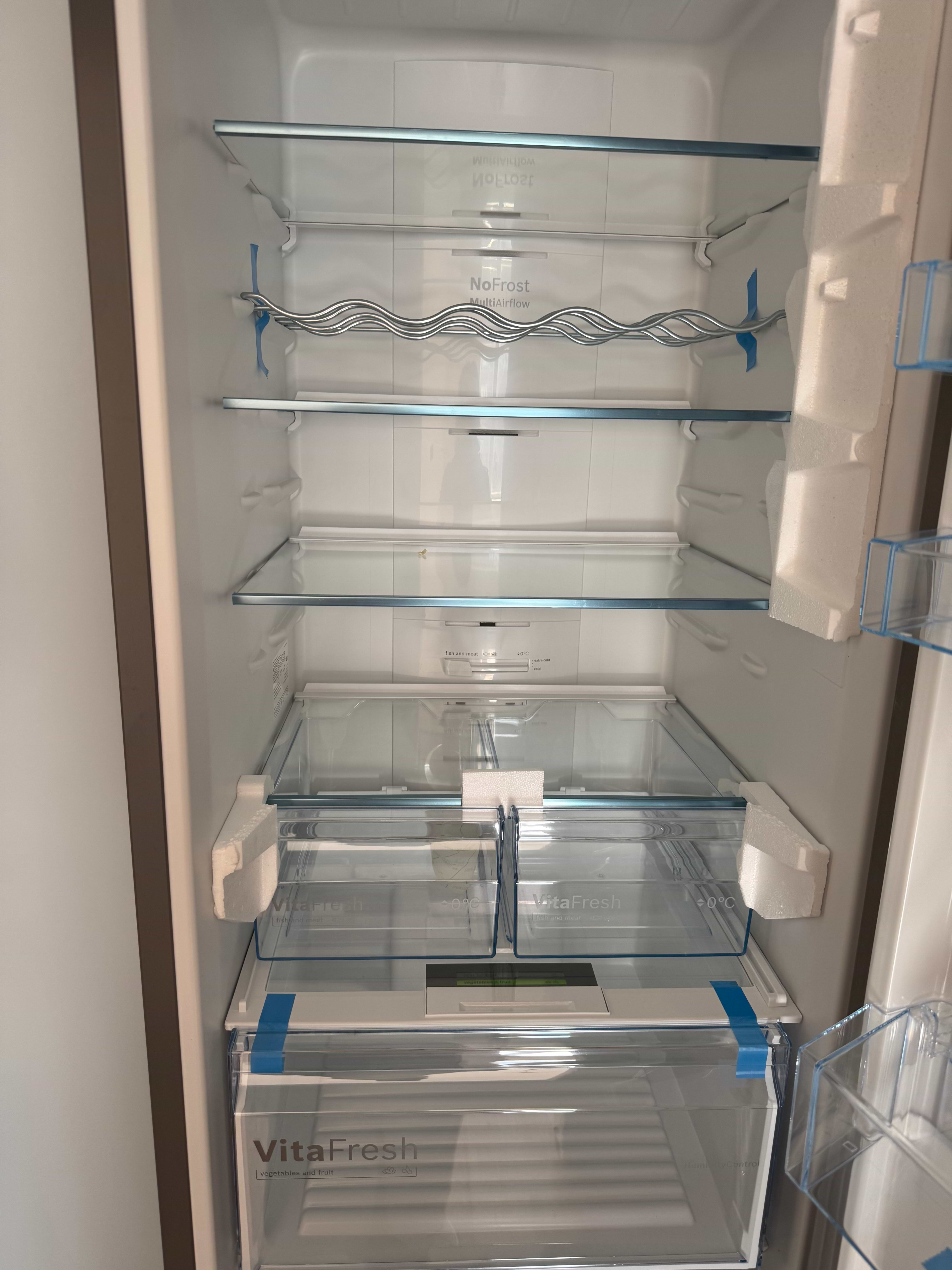 У холодильному відділенні передбачено наявність боксу свіжості, встановлено LED-освітлення. Продуктивність камери для заморожування з трьома місткими ящиками — 14 кг/добу. Регулювання температури в кожному з відділень — роздільне. Також є функції: