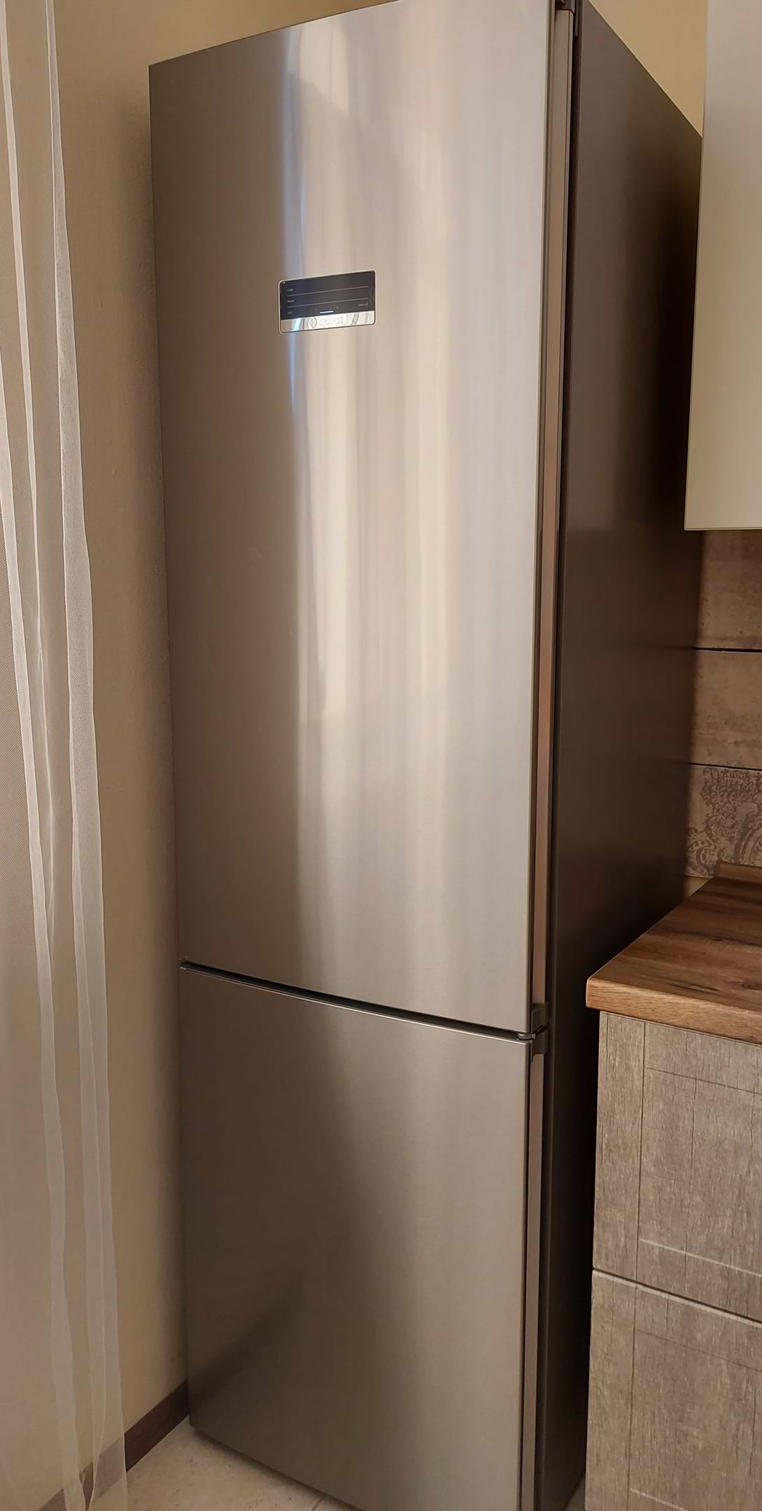 Чудовий холодильник. Приємний дизайн із дисплеєм на дверцятах. Дуже зручні інтегровані ручки. Для мене також мала значення можливість перевішування дверцят на інший бік.