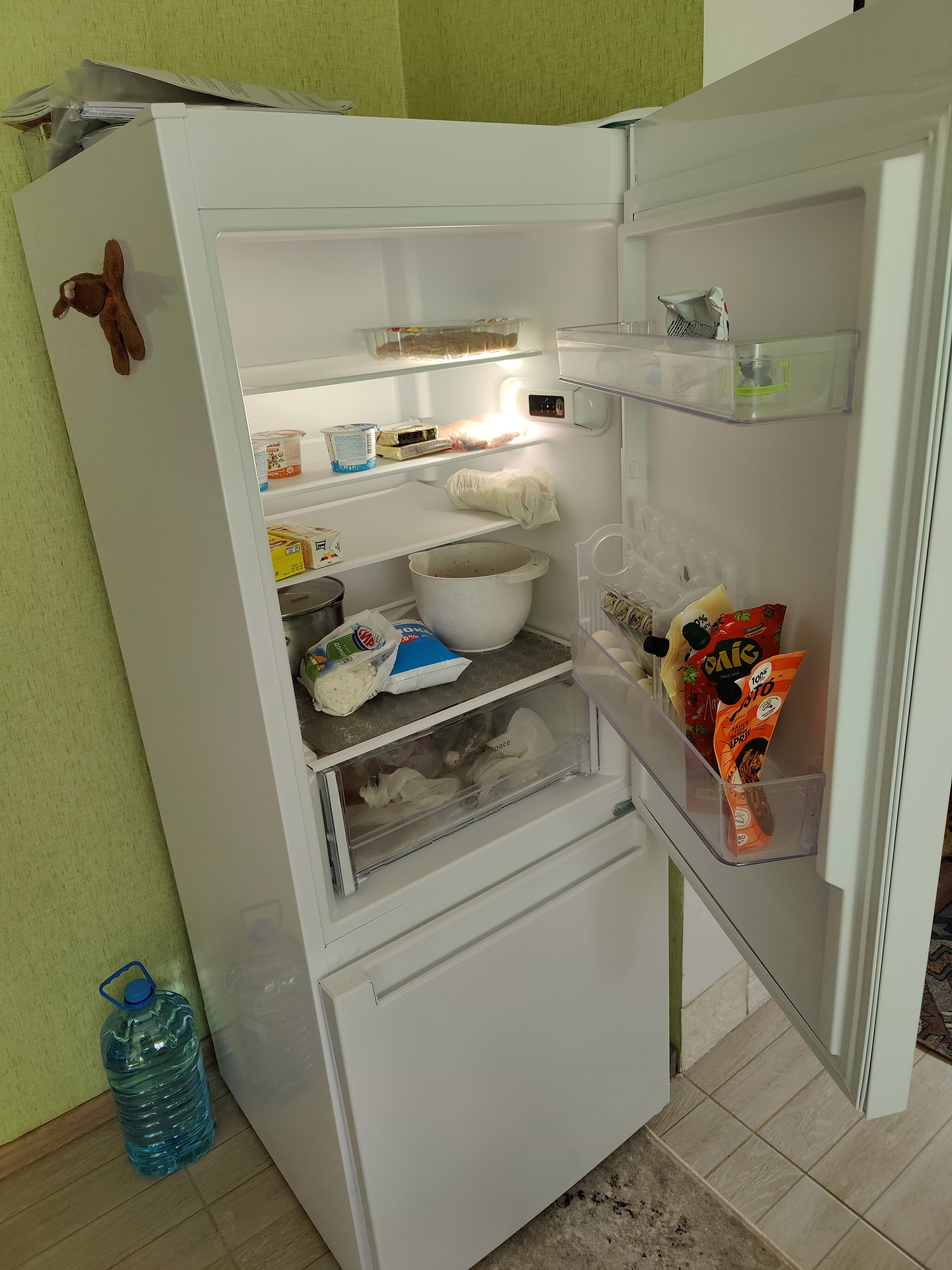 Холодильником задоволені. Чудовий компактний холодильник, зверху стане мікрохвильова піч. Для невеликої сім'ї, те що треба. Працює тихо, полички всередині вмісткі