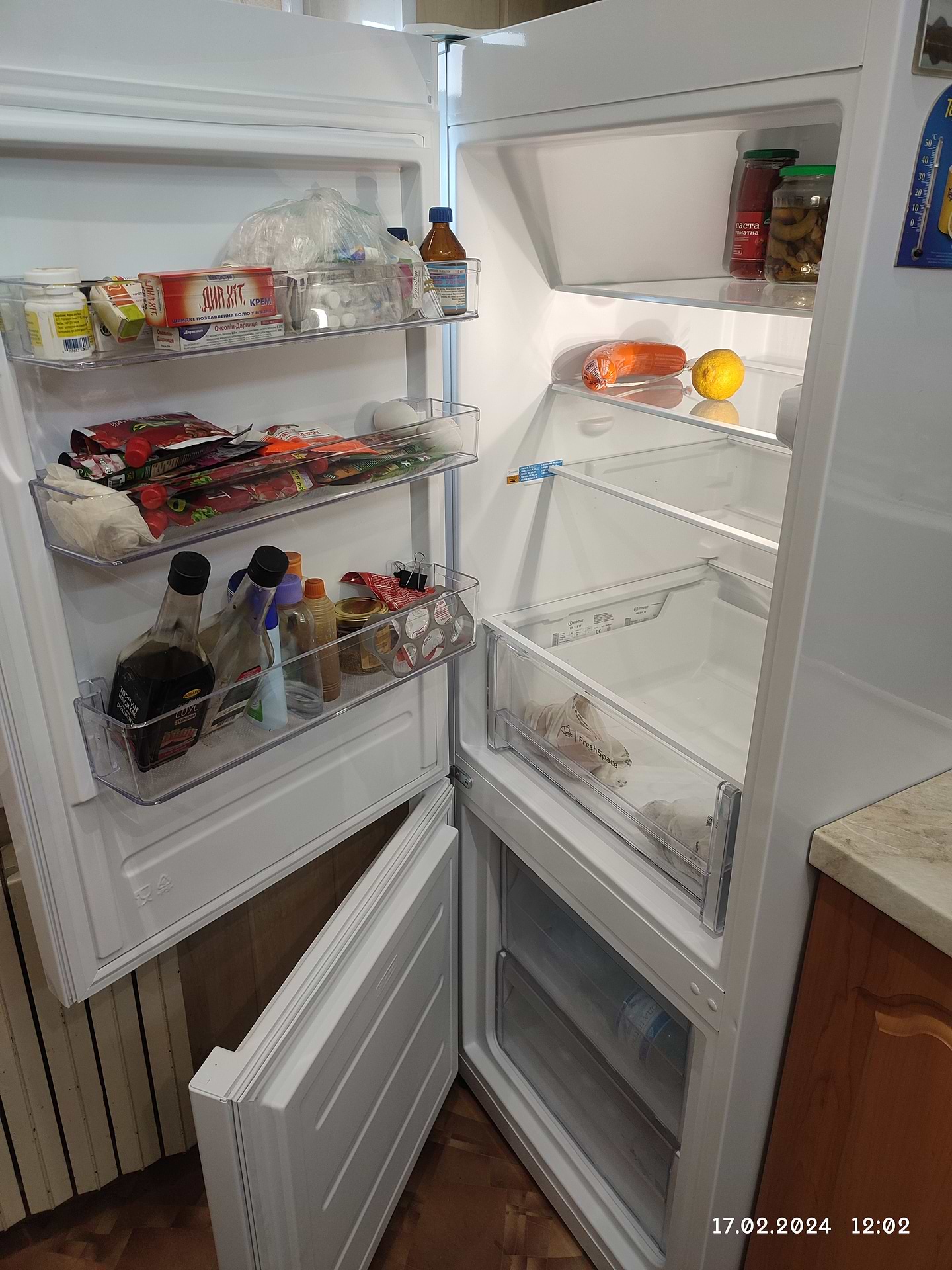 По-перше : оператор в чаті телеграму дуже допоміг у створенні замовлення, і за це велика подяка ! Сам холодильник не здивував, та головне - не розчарував ! зовнішні розміри реально співпадають з вказаними в описі. Реальний розмір поличок холодильника приблизно Г35хШ50 см. загалом, об'єма холодильника, кількості та розмірів дверних та внутрішніх поличок цілком, як на мене, вистачає на сім'ю з чотирьох чоловік. Після старенького "Дніпра" морозильне відділення на два відсіка здається взагалі безрозмірним! працює він не те щоб зовсім тихо, але й не шумно - зовсім не заважає ані перегляду телевізора на невеликий гучності, ані спокійній розмові біля нього. дуже легко самому можна перевісити двері холодильної та морозильної камери і для цього все йде в комплекті. І да - дуже порадувала доставка до квартири на другий день після замовлення ! Покупкою задоволений, дякую Сomfy !