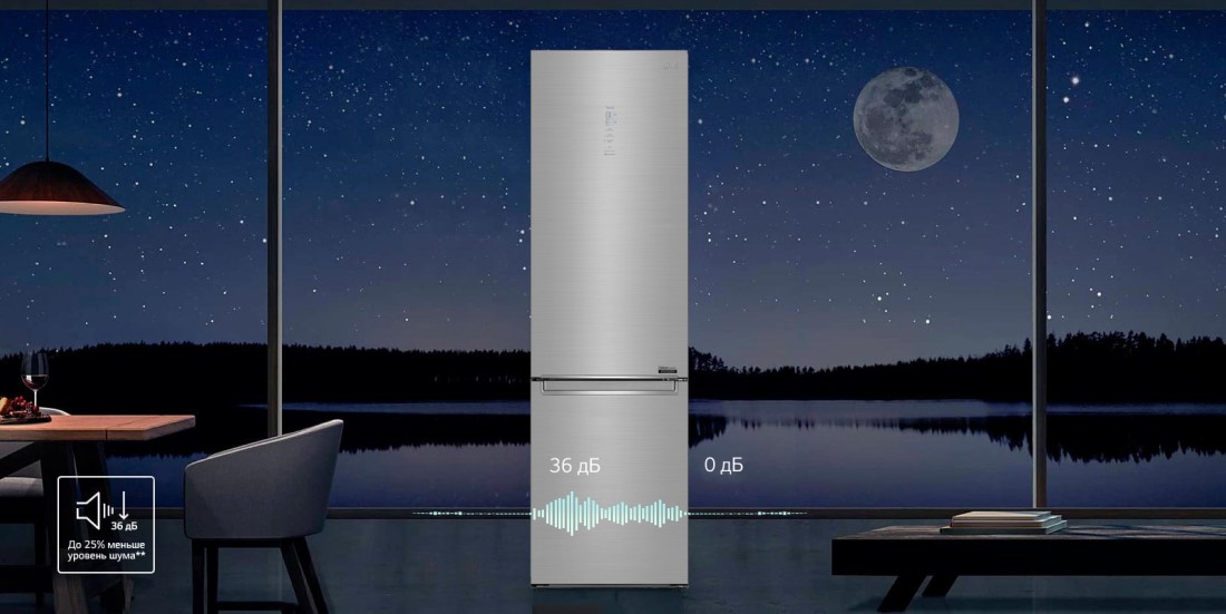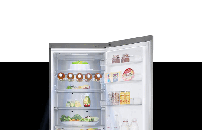 У нових холодильниках LG DoorCooling+ рівень шуму складає 36 дБ і це на 25% нижче, ніж в попередніх моделях. Холодильник працює безшумно та надійно, щоб не порушувати ваш спокій вдома.