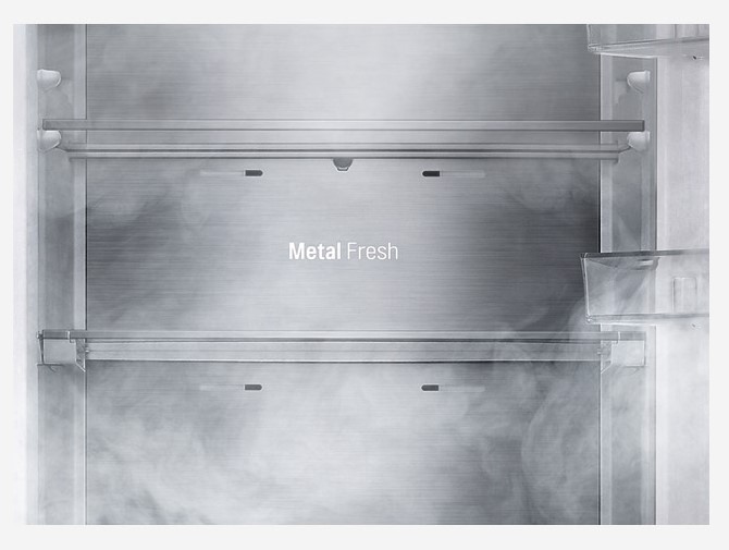 Металева пластина є додатковим джерелом охолодження і підкреслює мінімалізм та вишуканий дизайн холодильника.