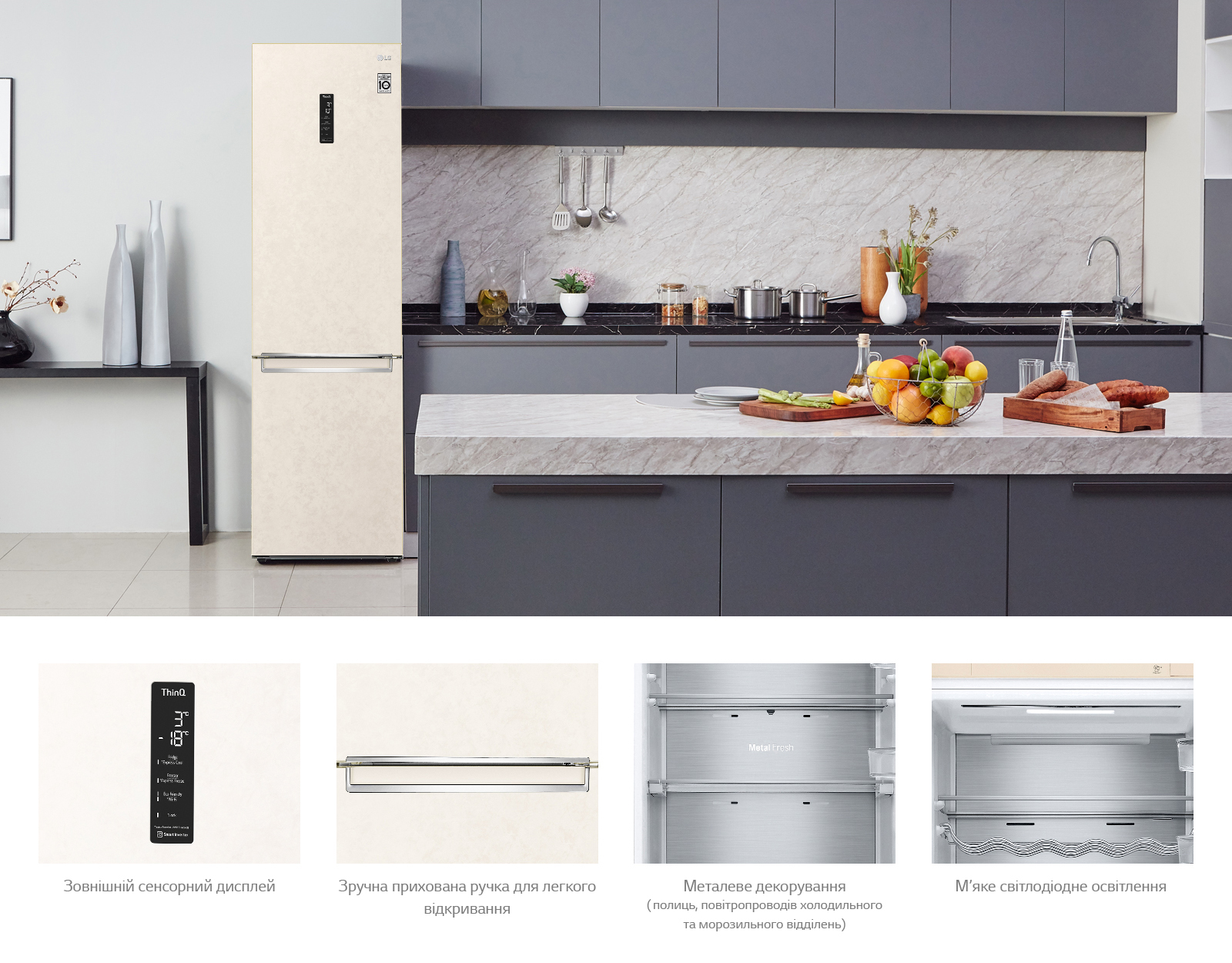 Металева пластина є додатковим джерелом охолодження і підкреслює мінімалізм та вишуканий дизайн холодильника.