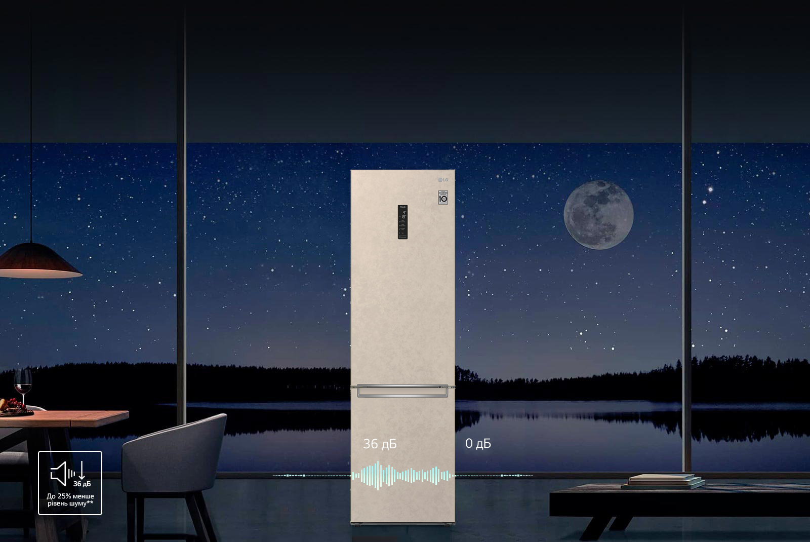 У нових холодильниках LG DoorCooling+ рівень шуму складає 36 дБ і це на 25% нижче, ніж в попередніх моделях. Холодильник працює безшумно та надійно, щоб не порушувати ваш спокій вдома.