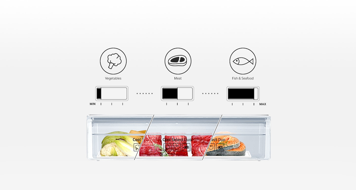 Специальные отсеки для хранения свежих овощей и фруктов, мяса, рыбы, имеют в своем арсенале дополнительные инструменты по настройке способа охлаждения. Передвижной язычок помогает настроить оптимальную температуру для каждого из них и обеспечить наилучшие условия хранения, поддерживая наиболее правильный температурный режим.