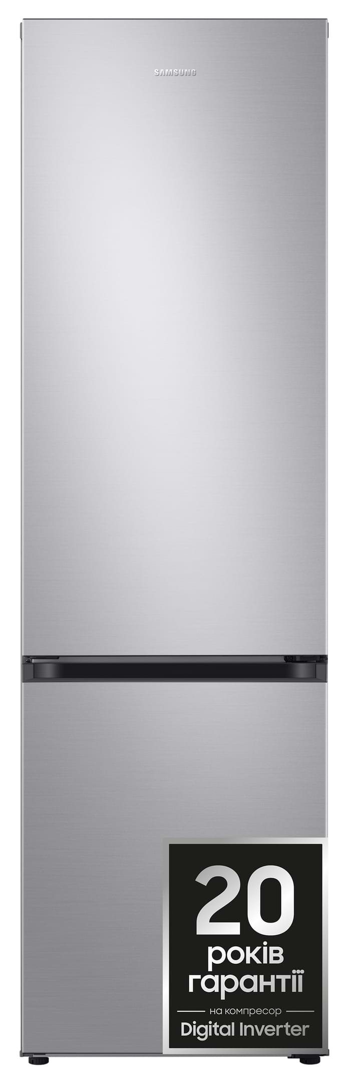 З цифровим інверторомЦя модель холодильника Samsung має інверторний компресор, який автоматично регулює всю роботу. Він має 7 рівнів потужності охолодження і може самостійно обирати кращий для окремого періоду часу. Завдяки цьому холодильник працює майже безшумно, споживає менше енергії й служить набагато довше.