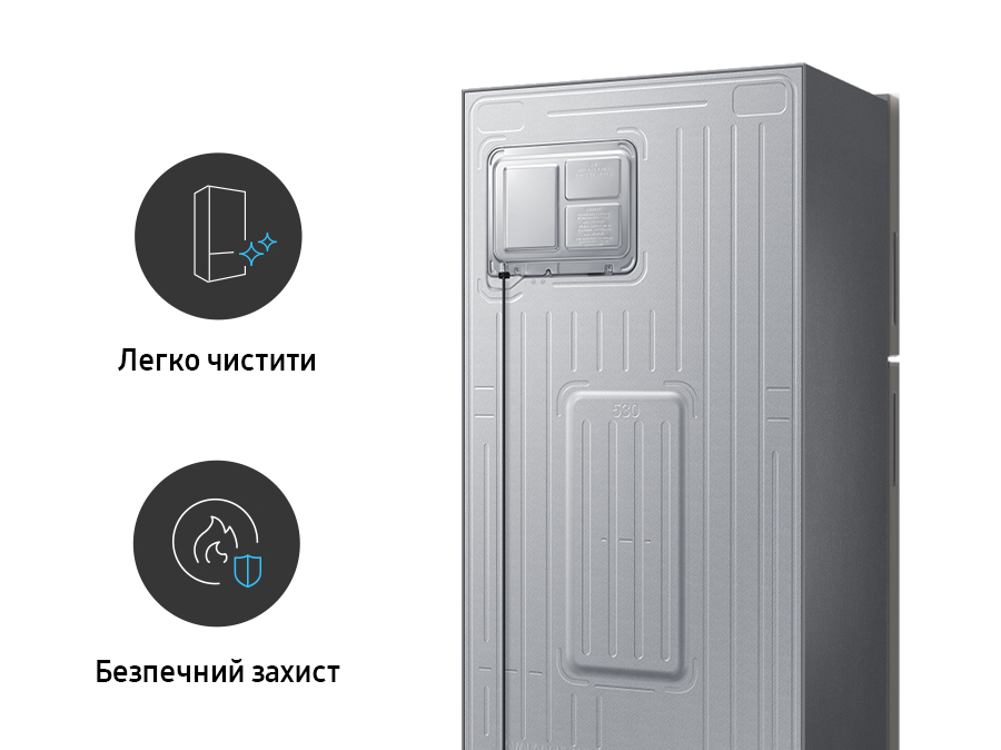 Clean BackТехнологія Clean Back зробить догляд за задньою панеллю набагато простішим та менш енергозатратним. Спеціальна захисна пластина приховує котушки та кабелю холодильника, що покращує його захист та значно полегшує догляд.