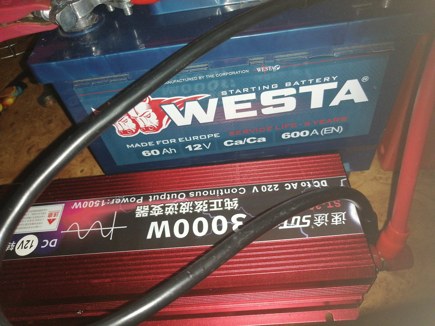Ноутбук та звичайний компʼютер з монітором працюють. Підключено до тягового акумулятора 100А/г. Втрата потужності акумулятора приблизно 6-10 відсотків за годину.