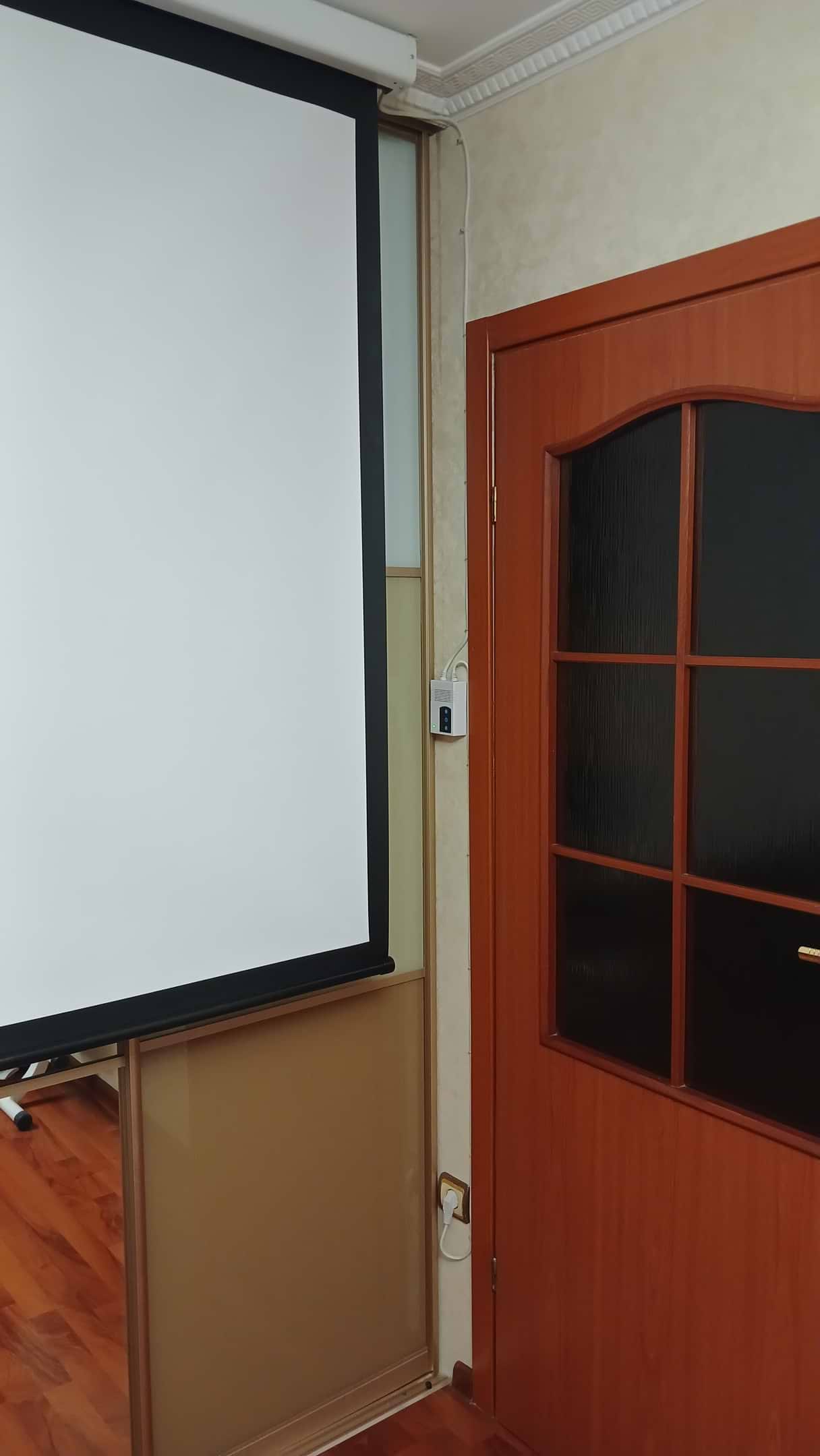 Отличный экран. Размеры короба 256×7×7см.Длина кабеля от короба до вилки 260см.Размеры экрана соответствуют описанию.