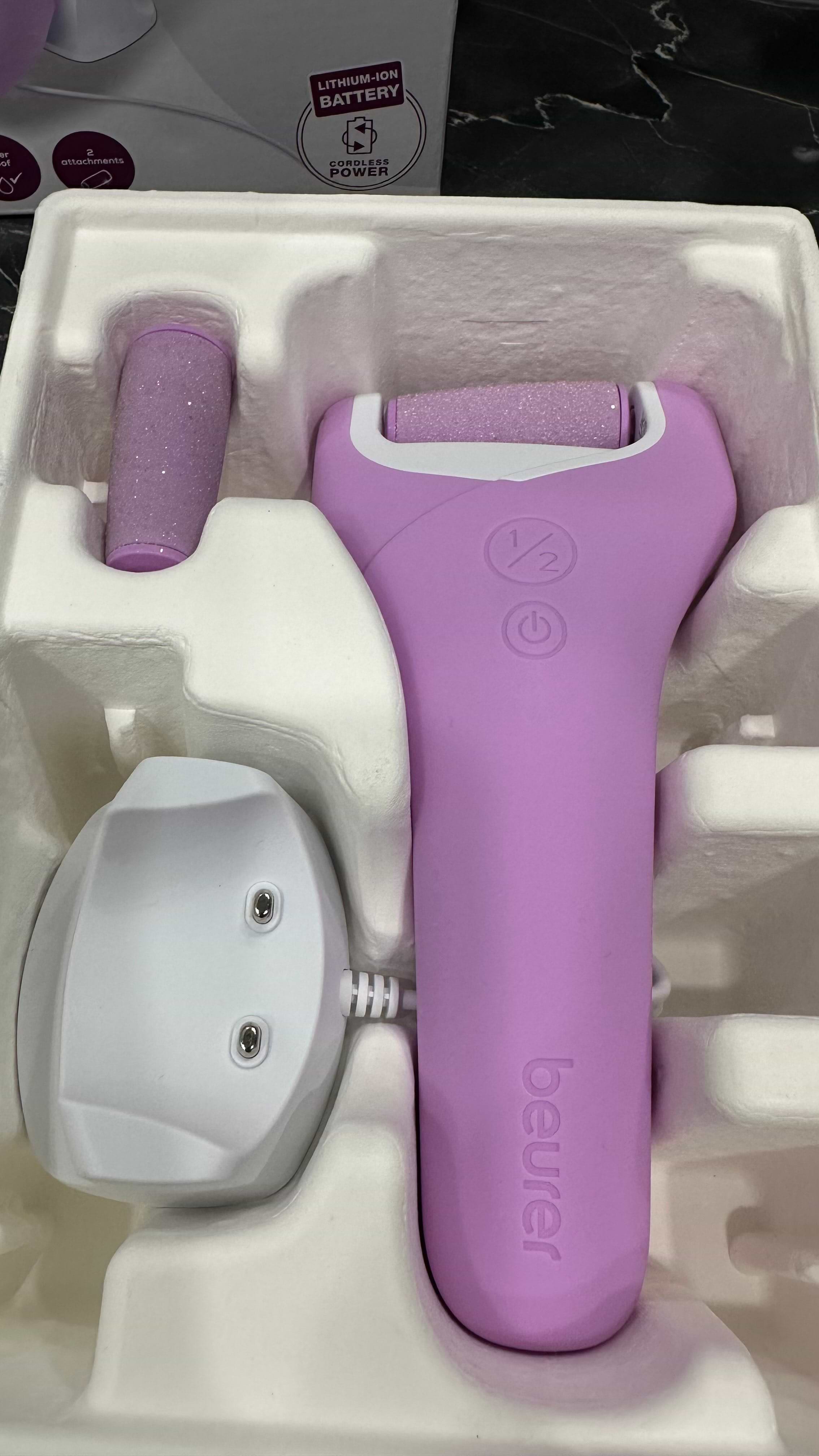 Ролик виконаний в асиметричному дизайні і чудово підлаштовується під різні ділянки ніг. Обирайте одне з двох налаштувань швидкості: для ніжного та інтенсивного догляду.