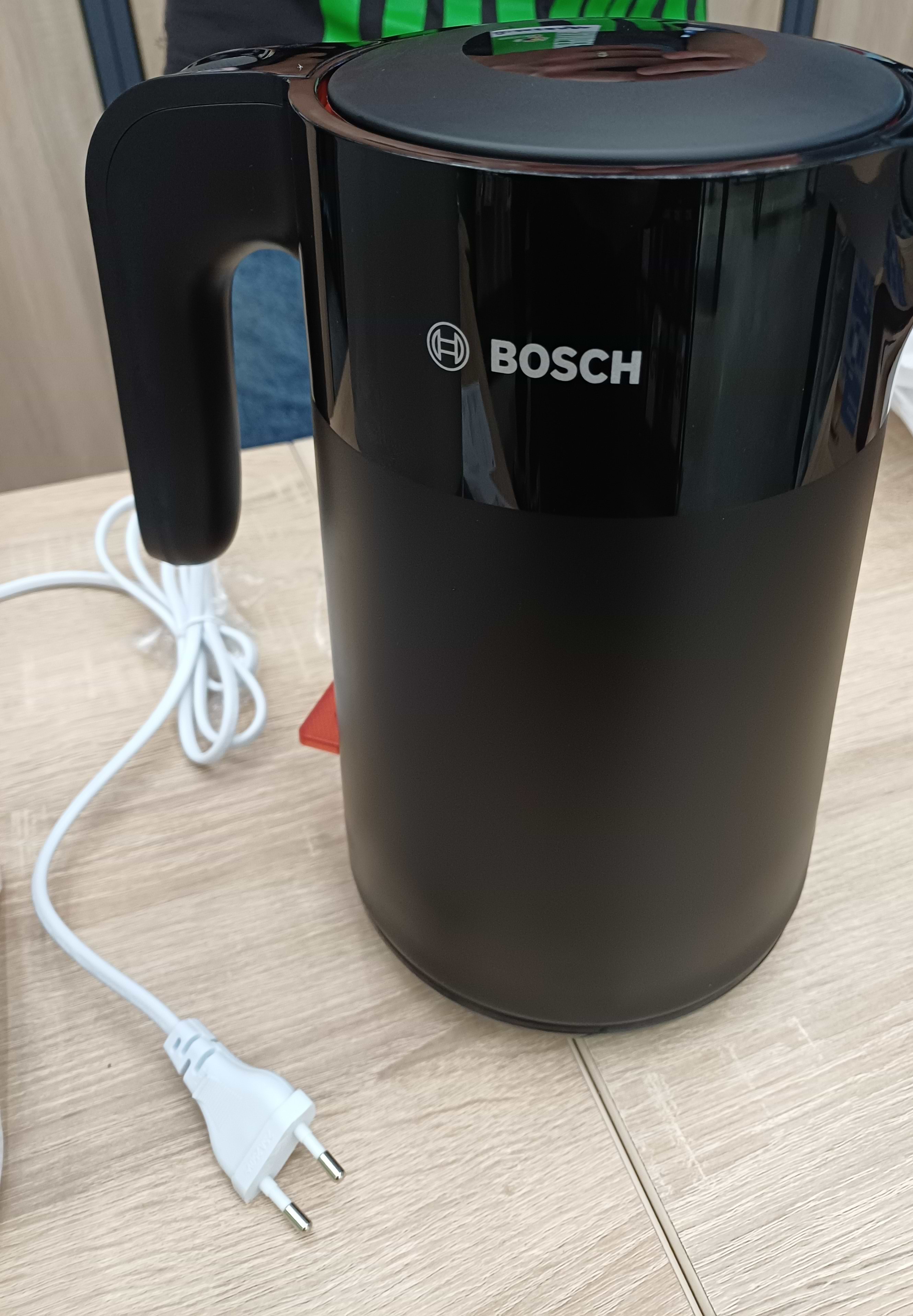 Електричний чайник Bosch TWK2M161 виглядає стильно й працює чудово. Вода закипає дуже швидко, а ручка зручна — не ковзає навіть коли руки вологі. Корпус якісний, нічого не люфтить і не гріється надто сильно. Сподобалося, що кришка відкривається плавно, а фільтр легко знімається для очищення. В цілому, чудовий чайник для щоденного використання!