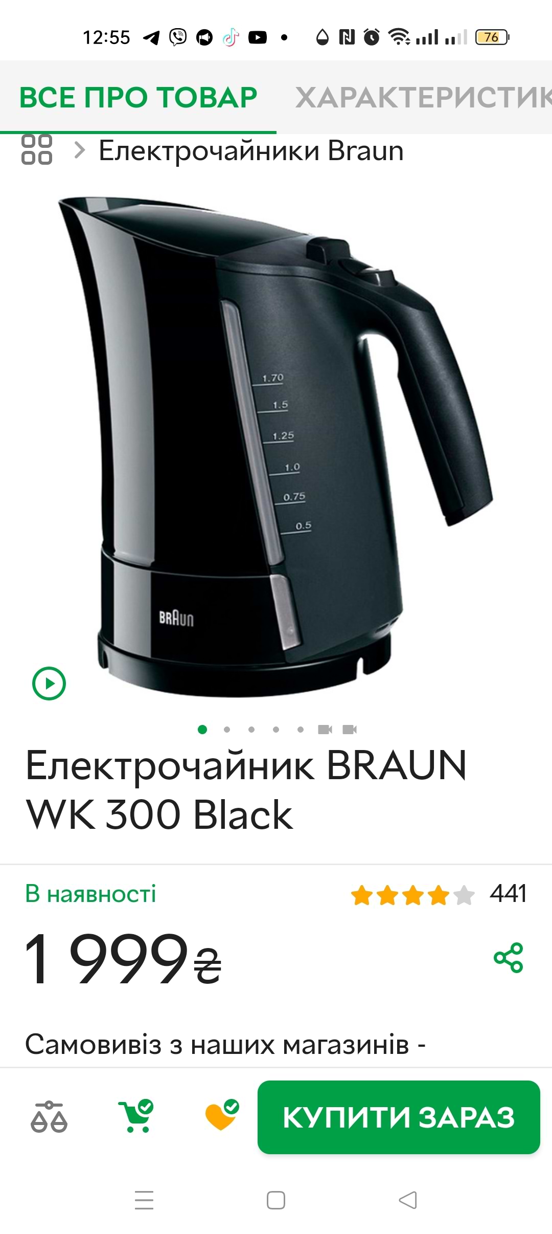 Мені дуже подобається чайник Braun,який я купила рік тому. Він швидко нагрівається, легко миється. Красивий чорний колір.