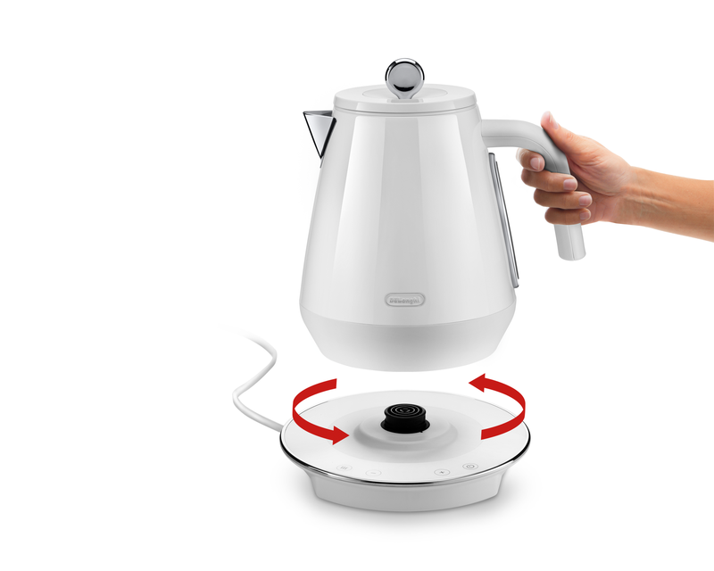 Поворотна основа на 360° робить використання чайника надзвичайно зручним. Вона разом із з’єднаним шнуром, що згортається, забезпечує максимальну свободу та комфорт, під час користування.