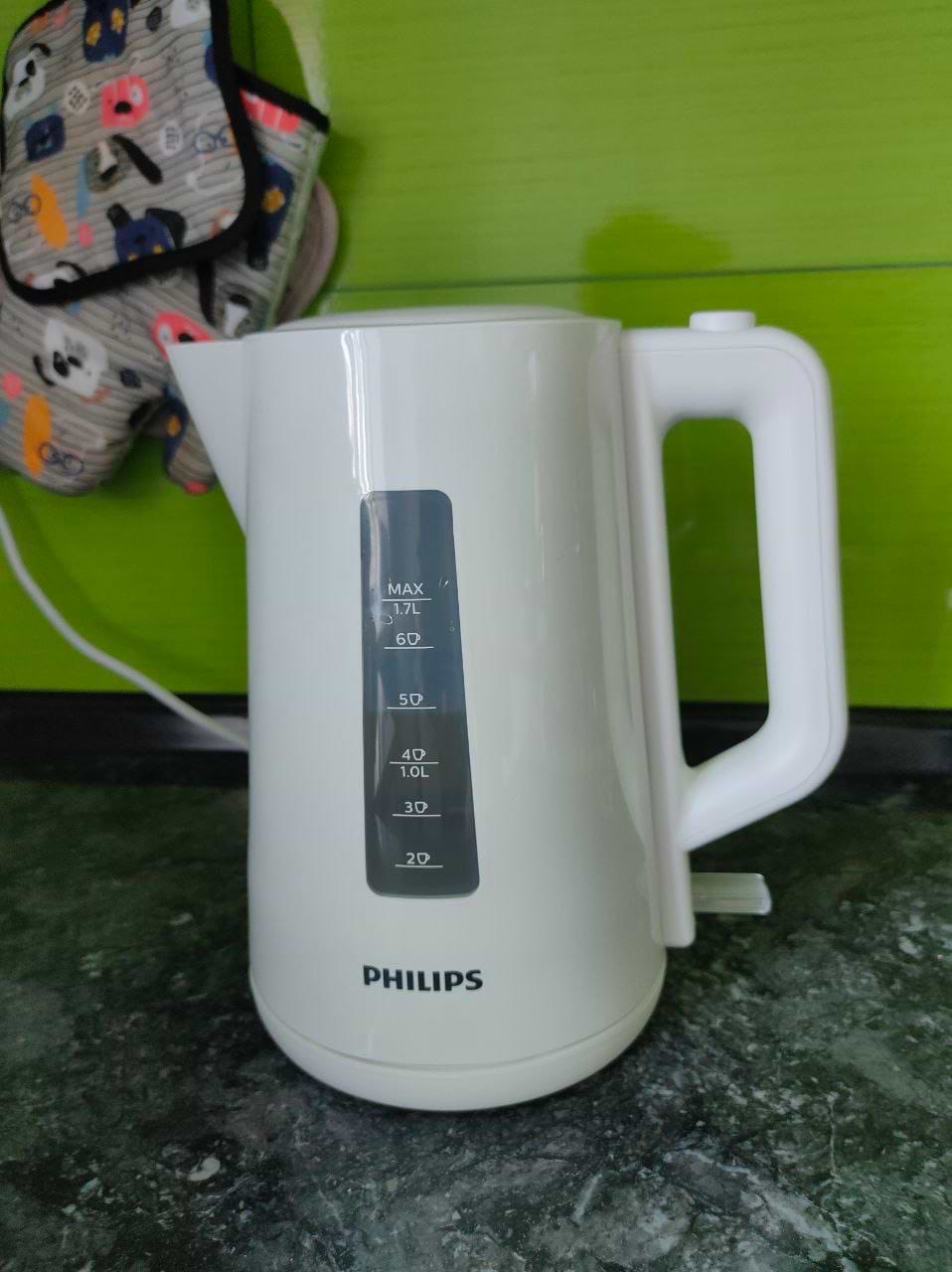 Зручний та вмісткий чайник. Швидко нагріває воду, працює відносно тихо. Пластик якісний, жодних сторонніх запахів ані при першому кип'ятінні, ані в подальшому використанні. За тиждень використання недоліків не знайшов. Рекомендую.