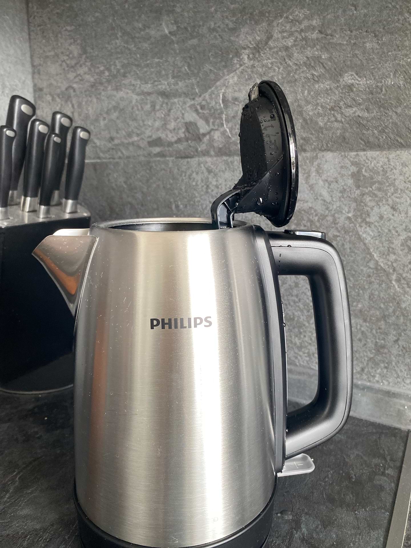 Купили на заміну tefal. цей виглядає гарно. Кришка відкривається на 90 градусів тому зручно набирати воду, але конденсат капає на ручку. Швидко вимикається при закипанні і не випускає багато зайвого пару. Наприклад у бабусі gorenie, так той довго не вимикається. Зручна (стійка) підставка , я б туди додав ще мяких ніжок щоб не дерли стільницю.