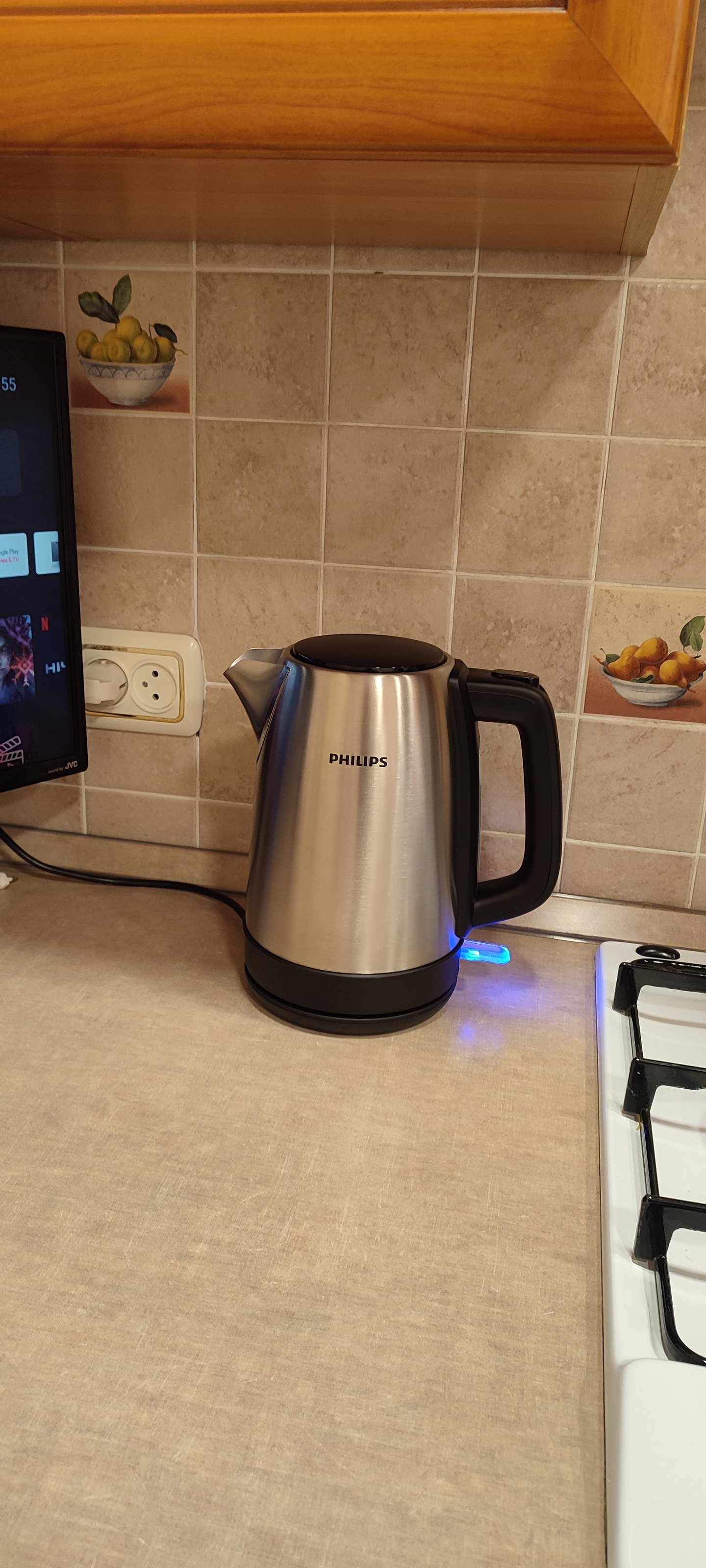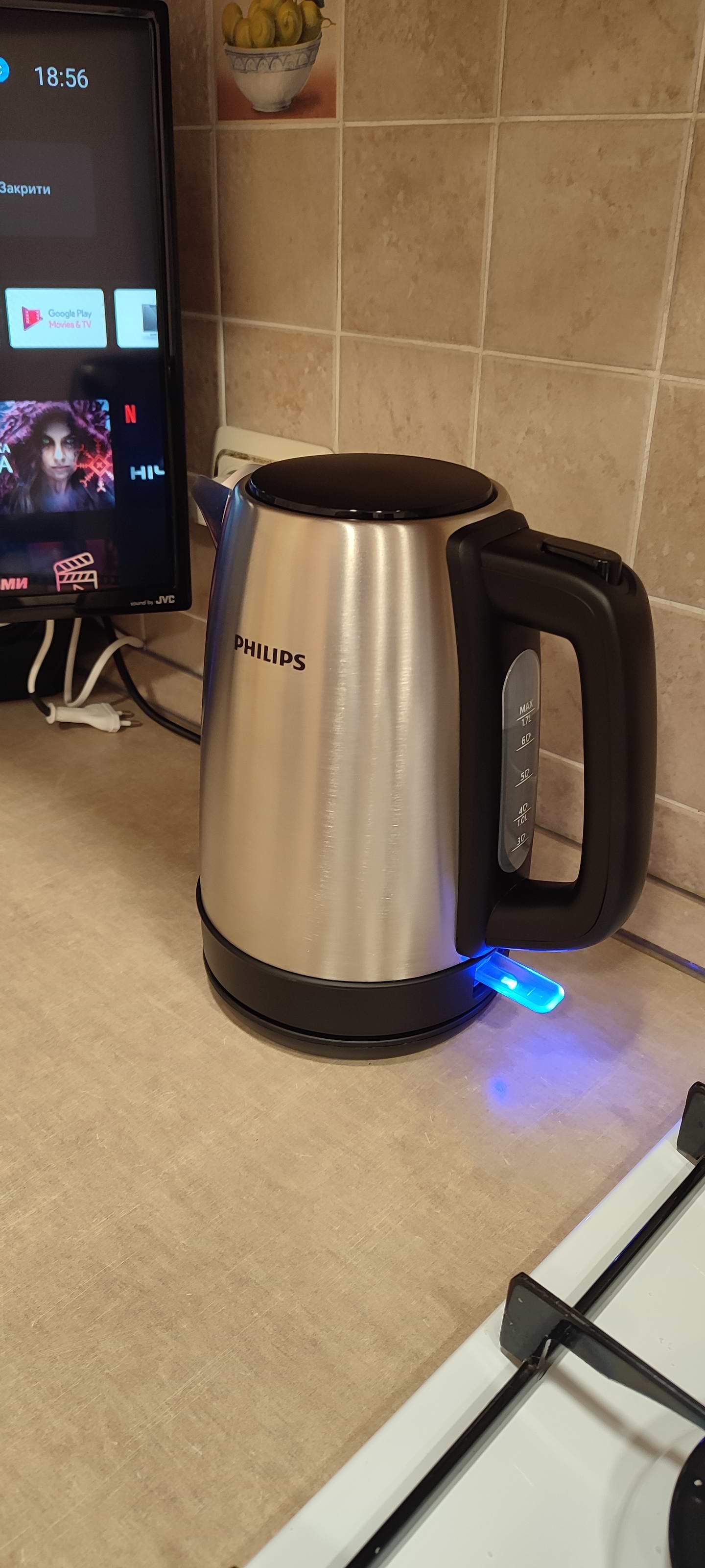 Завжди поважаю бренд Філіпс, вже багато років віддаючи перевагу дивайсам цього бренду. Дана модель підкорила дизайном, потужністю і головне- зручно набирати воду з крану, бо кришка відкидається на весь просвіт кухля, а не на 45 градусів, як у багатьох інших чайників.