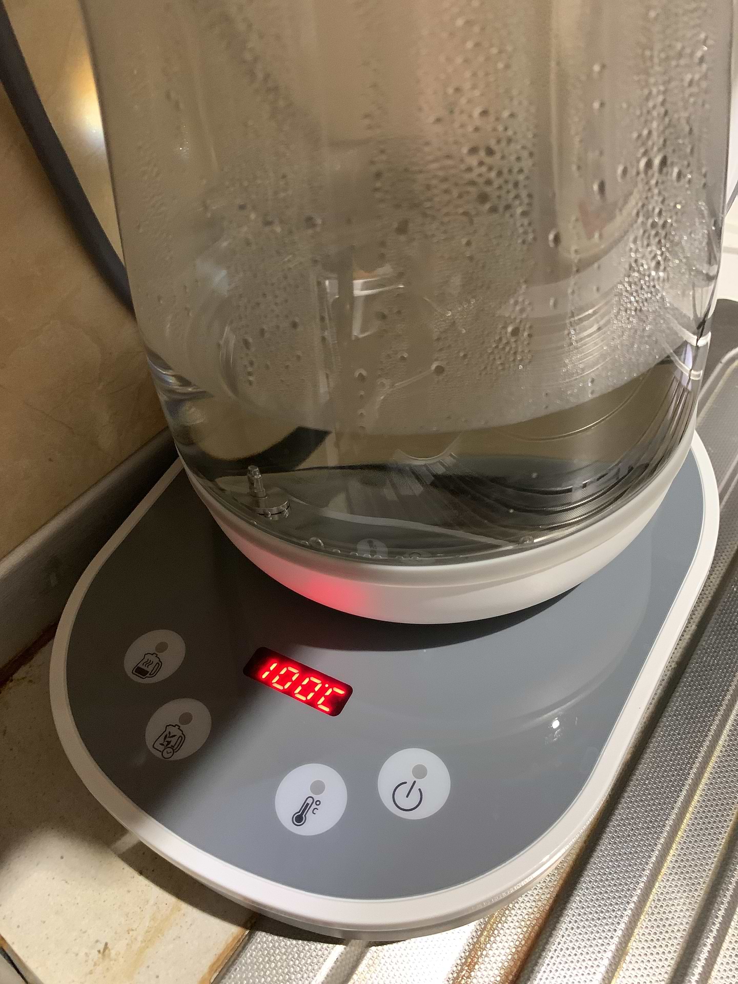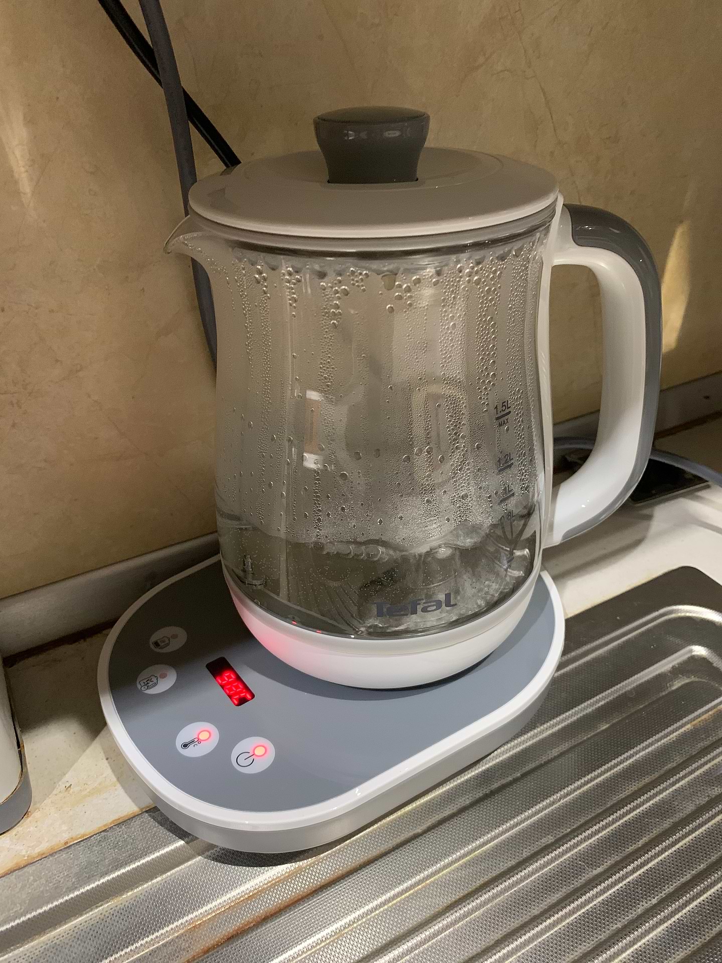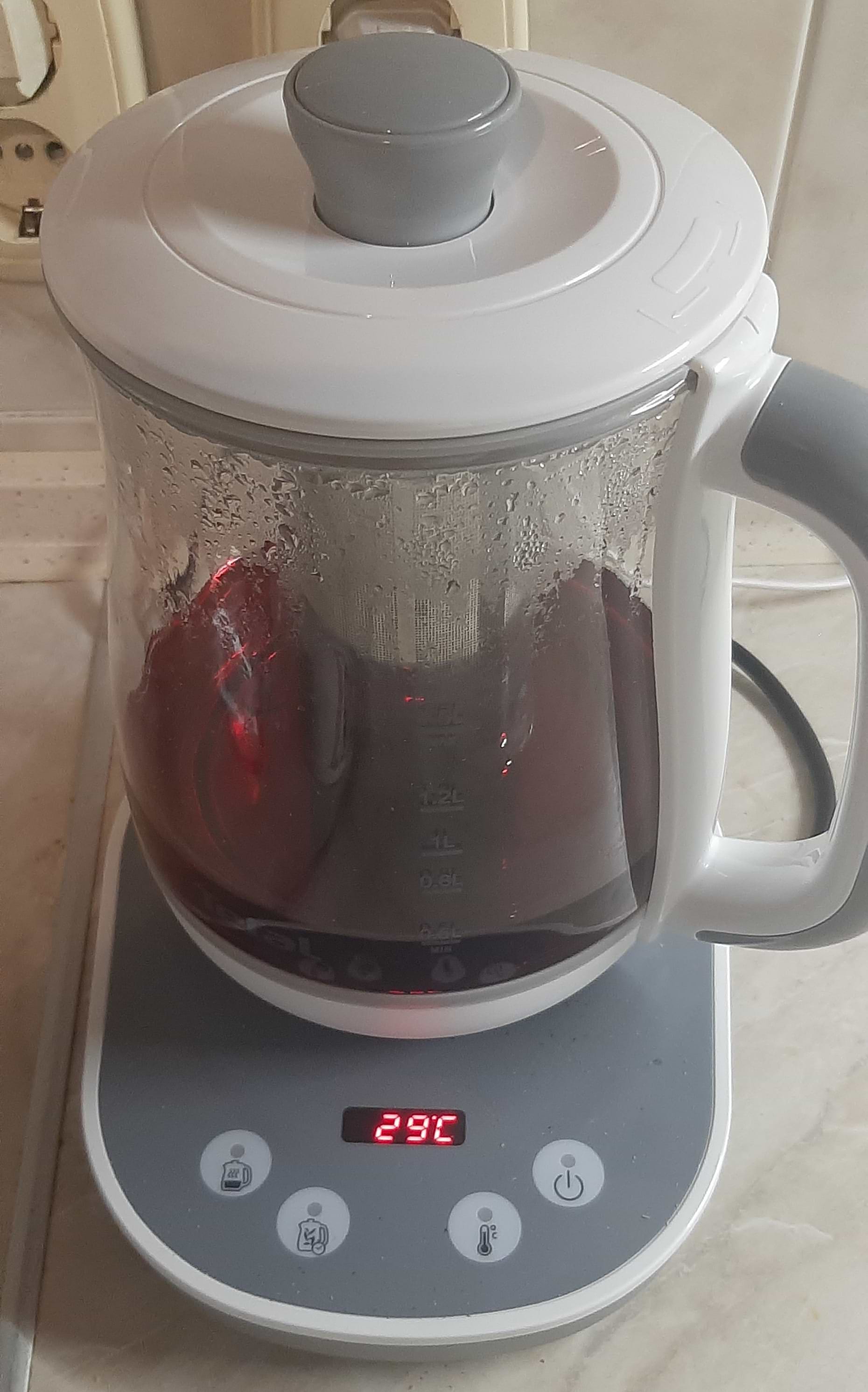 Тихо працює в порівнянні з чайником Кенвуд К-міх, прекрасна функція відображення поточної температури води в чайнику, швидко нагріває воду. Функцією заварювання чаю ще не користувались.