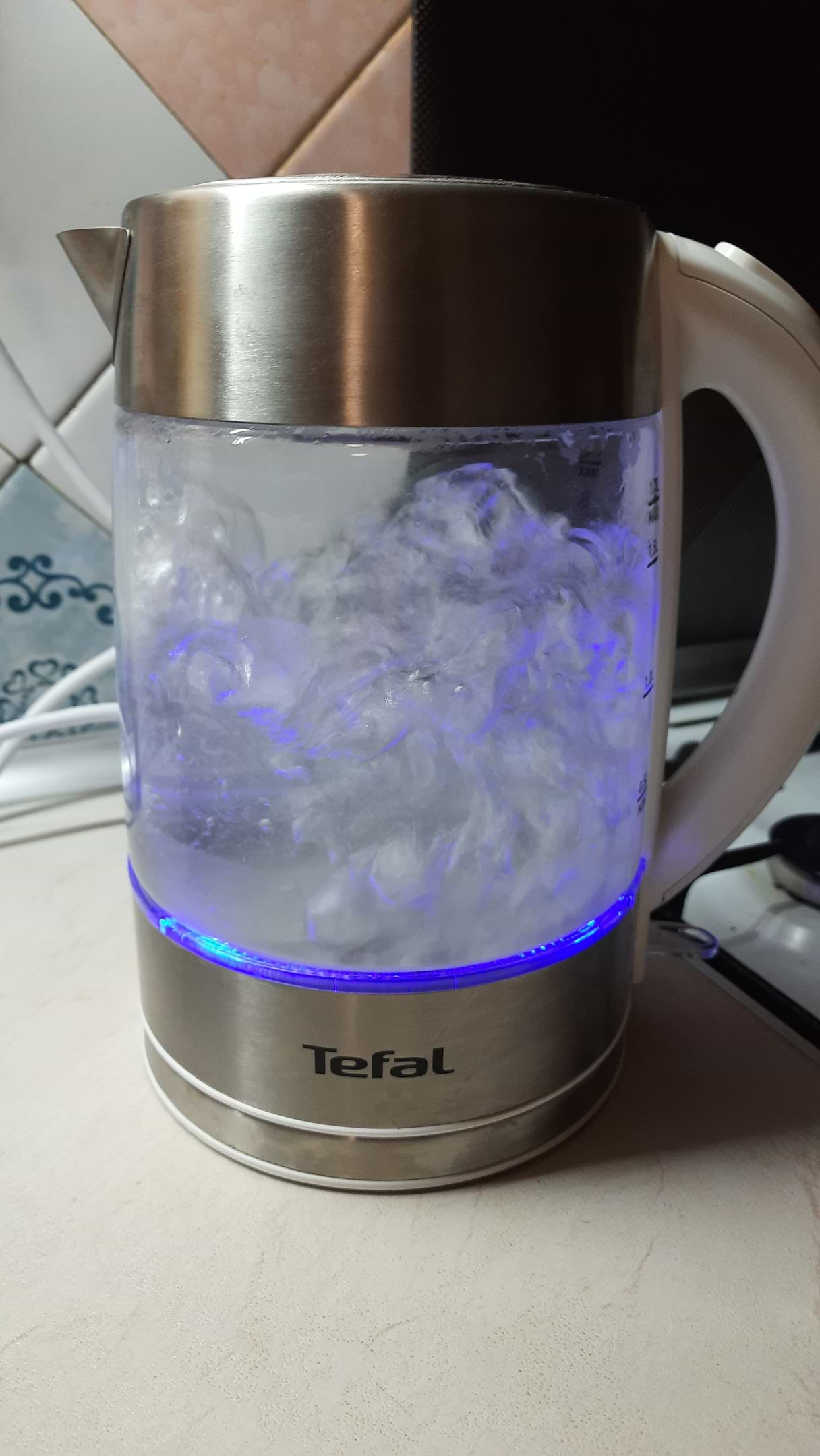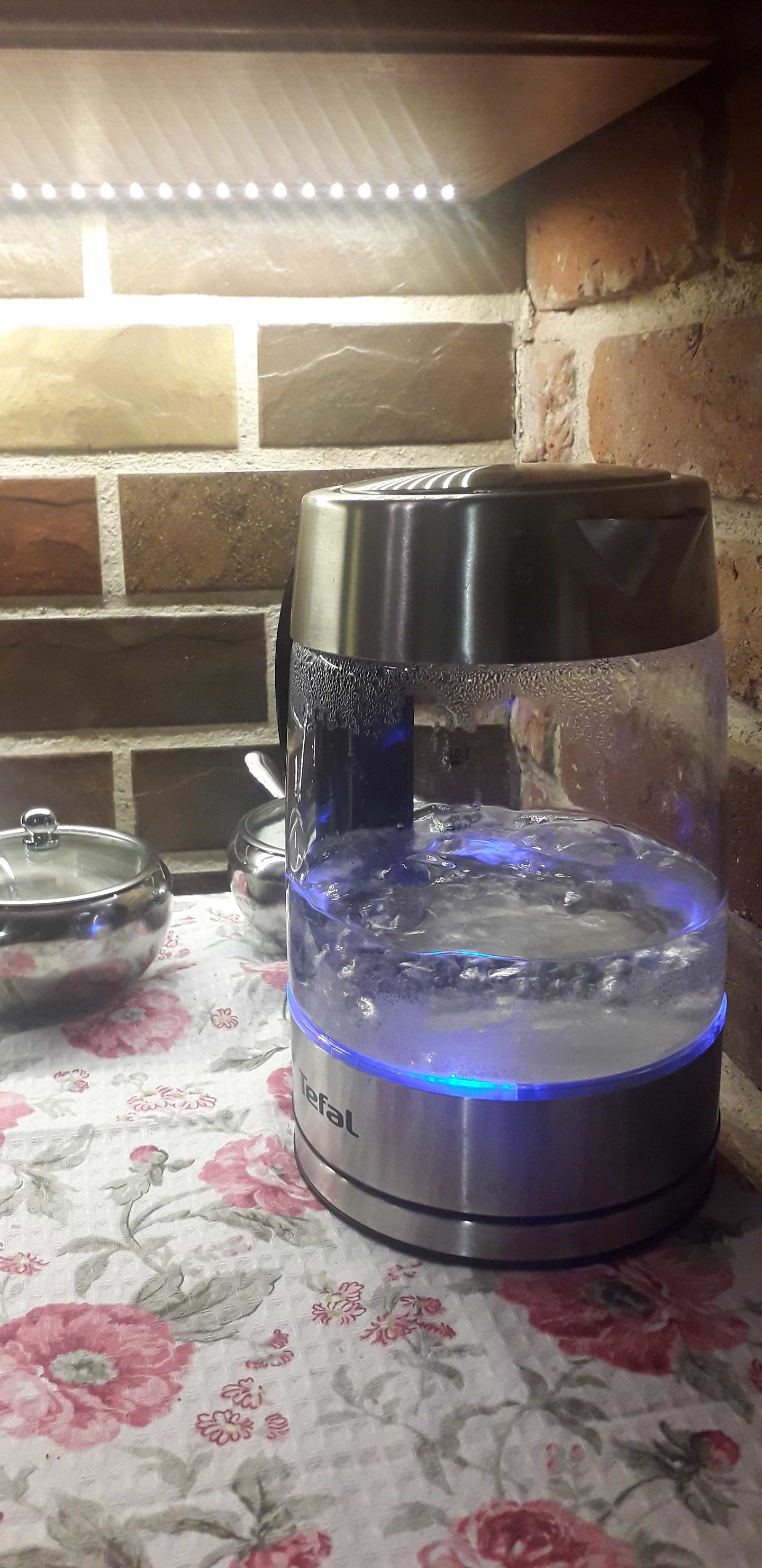 Пользуюсь 2 недели. Элегантный чайник, из за стеклянной колбы на столе выглядит как "человек невидимка". Красиво светится синим цветом во время работы. Закипает быстро и кипятит воду основательно. С носика не капает, из под крышки при открытии конденсат не стикает на стол. Мыть легко, так как все видно.