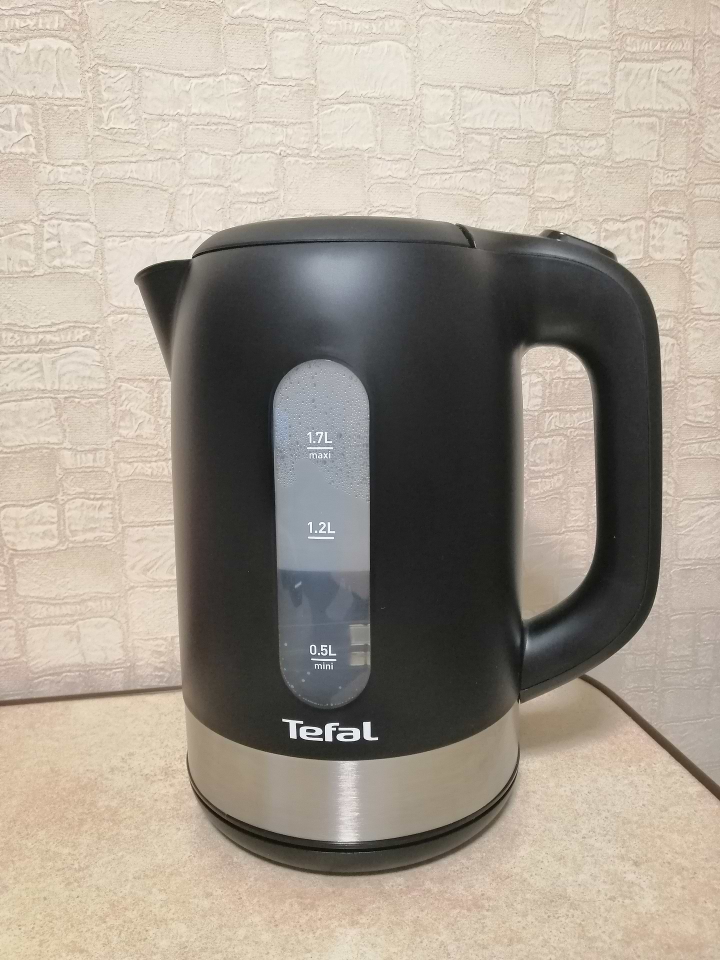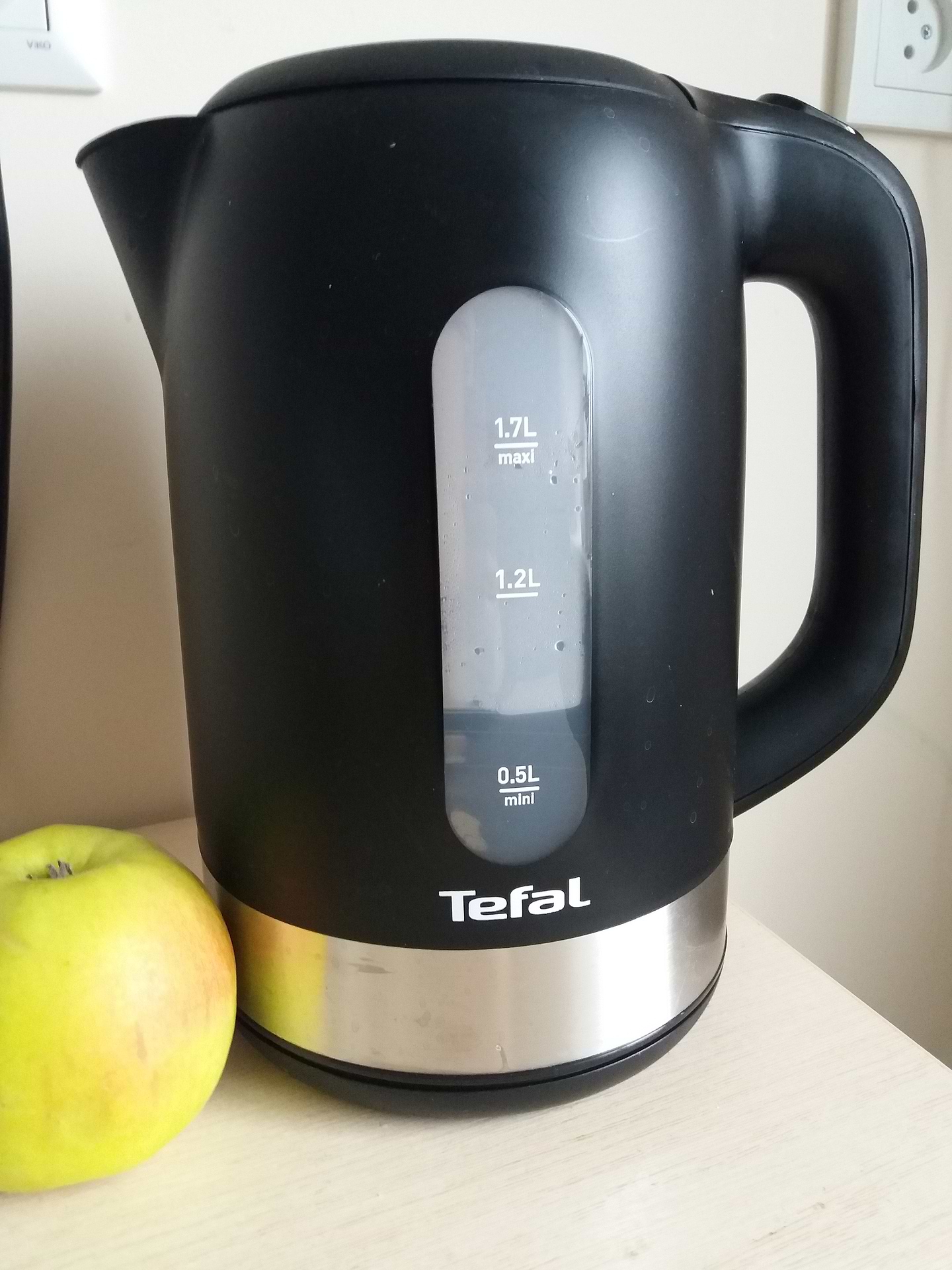 Стильный матовый чёрный дизайн в сочетании с металлом смотрится очень красиво. Выглядит компактно хотя объем 1.7. Легко моется т. к. нагревательный элемент спрятан. Очень удобно что кнопка вкл на верху и крышка чайника открывается кнопкой. Чайник мощный и быстро закипает вода.