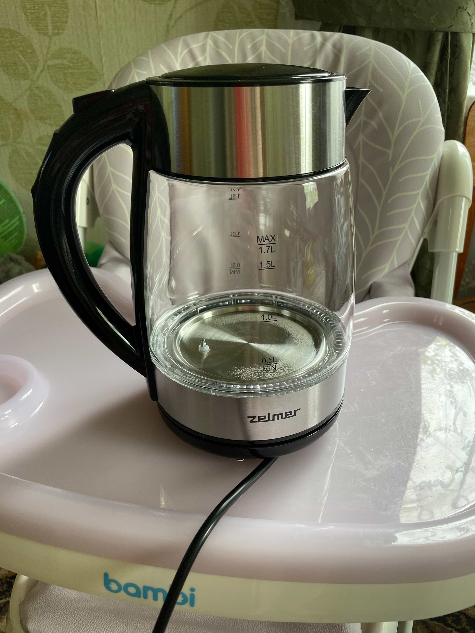 Чайник сподобався, підігріває дуже швидко. Подає звуковий сигнал при включені і при закінченні роботи, гарна підсвітка знизу. Тестили різні температури нагрівання, все супер! Чайник пластиком не воняє. Раніше був чайник цієї ж фірми, але супер бюджет, і він пропрацював 6 років. Тому даний варіант обрала не вагаючись