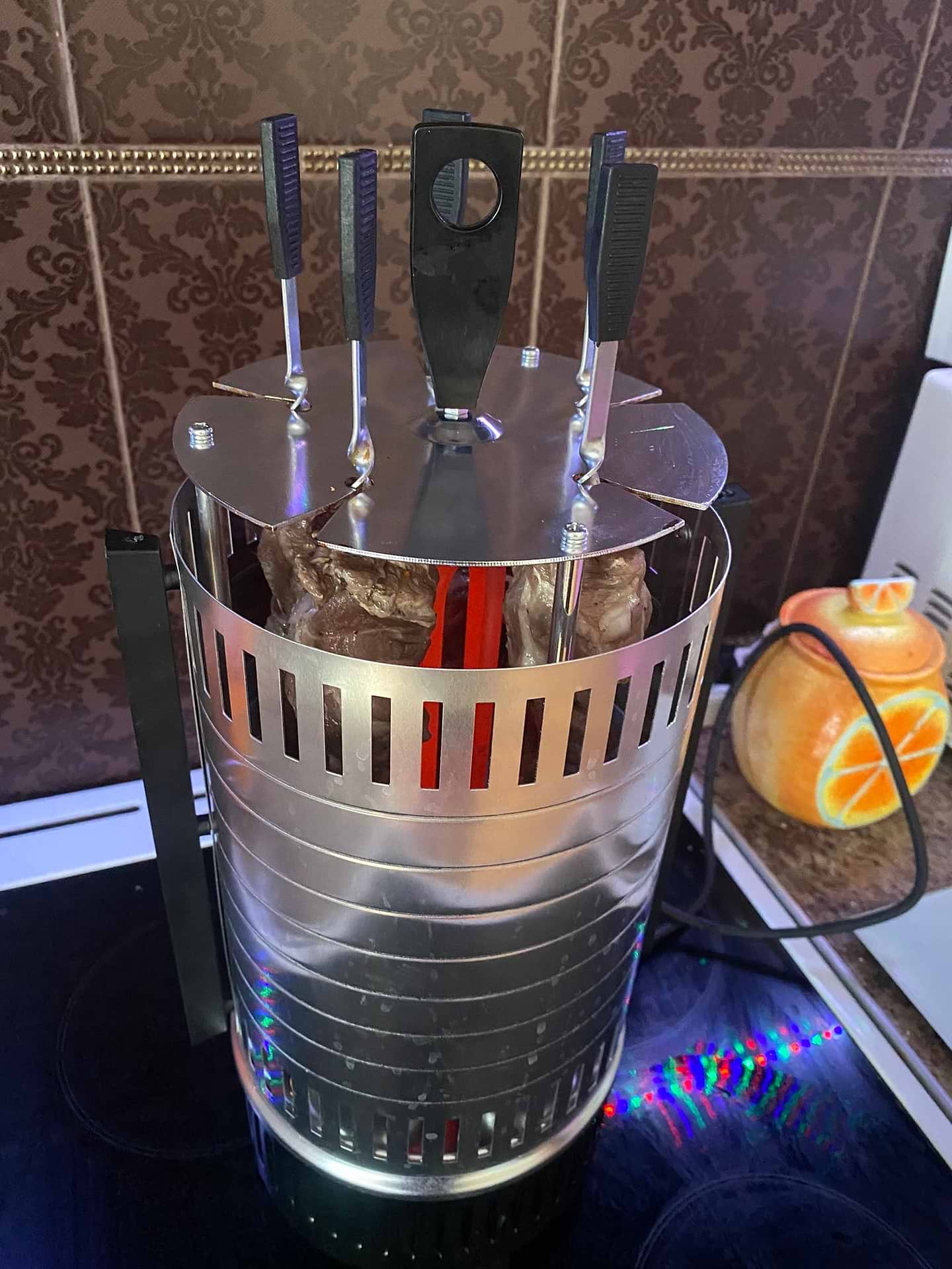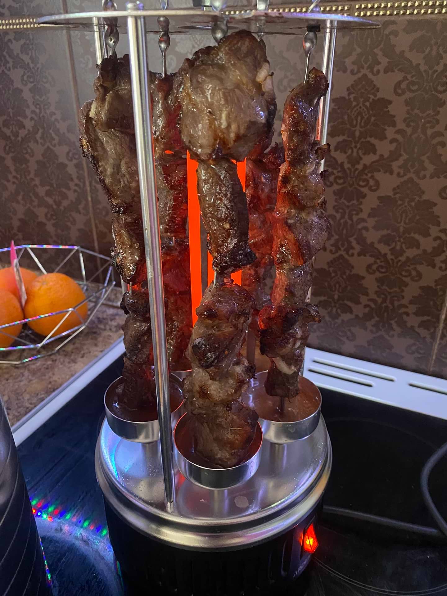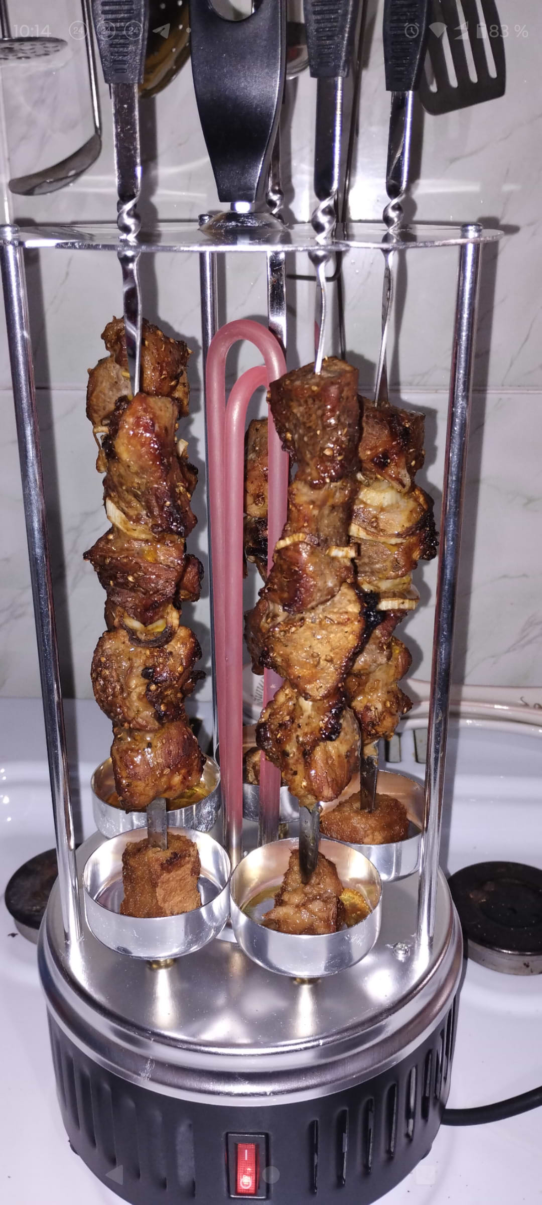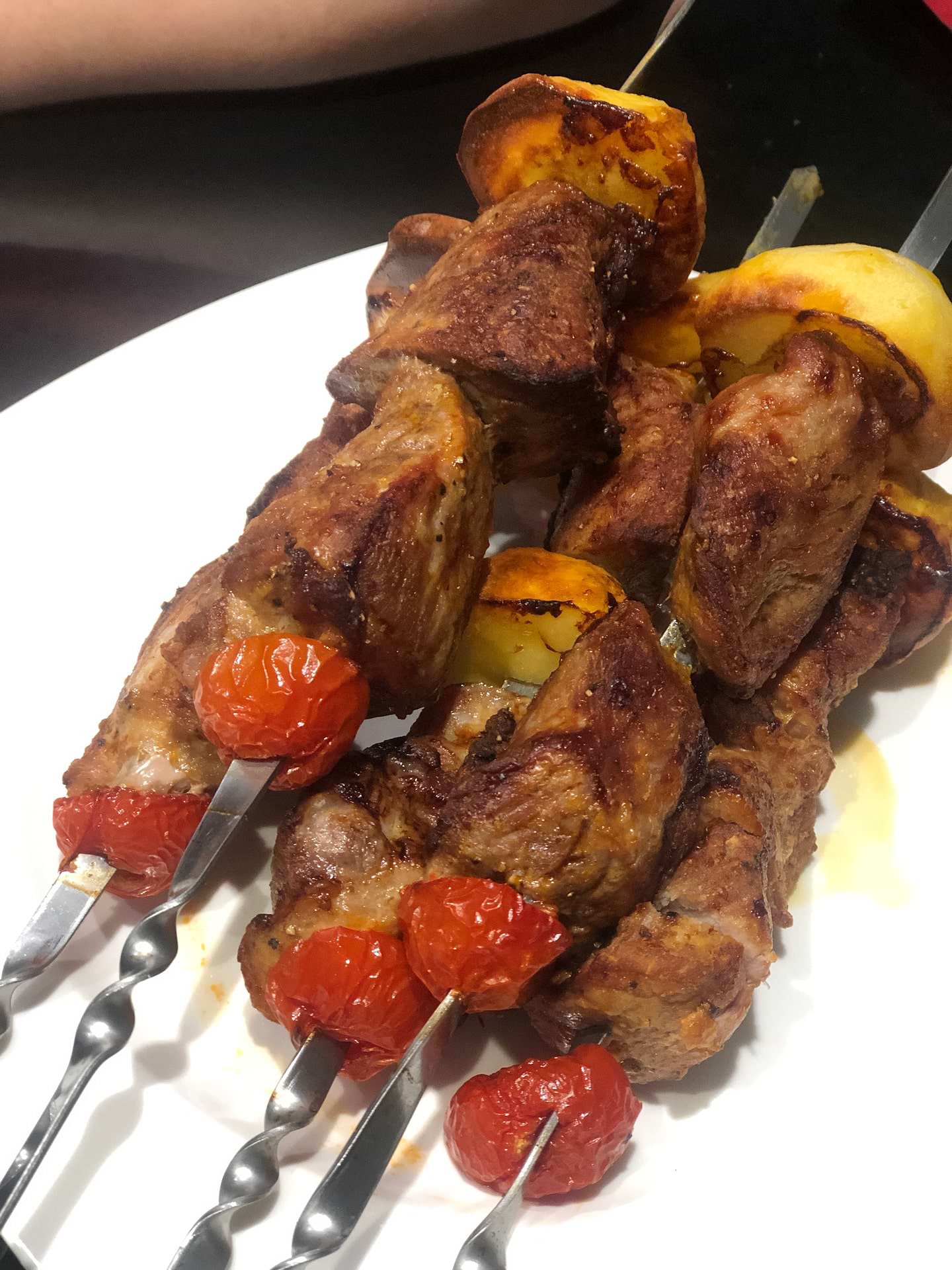 Нет зубцов на шампурах, мясо сползает вниз (но картофель на конце шампура отлично решил проблему)