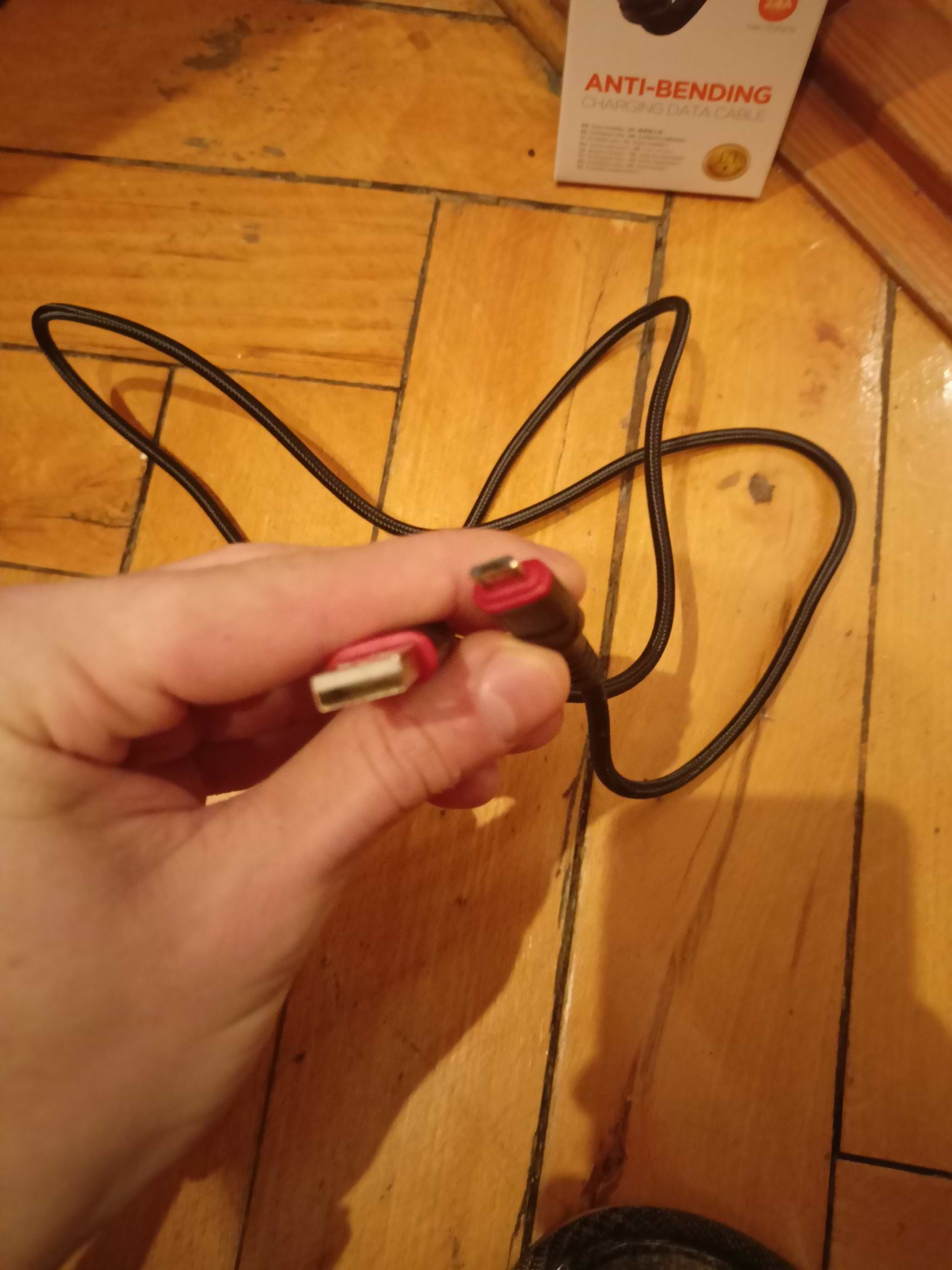 Кабель без проблем заряджає при нахилів біля роз'ємів що в MicroUSB та USB Type A, кабель із тканини, має міцні резинові кріплення біля роз'ємів. Синхронізацію з комп'ютером не перевіряв, але на коробці написано що є.