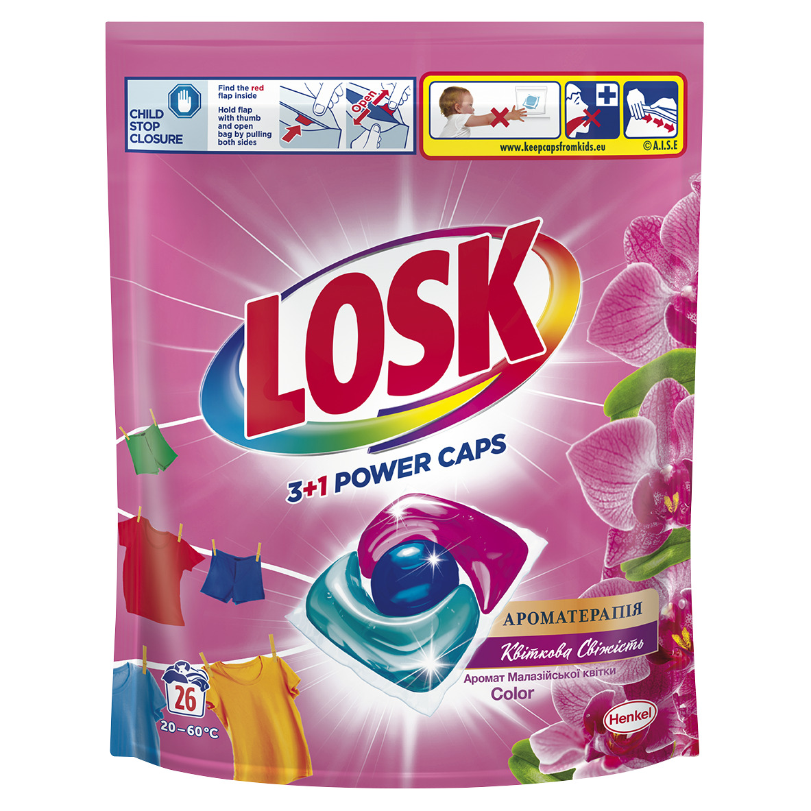 Капсули для прання Losk тріо-капсули Ефірні масла та аромат Малазійська квітка 26шт
