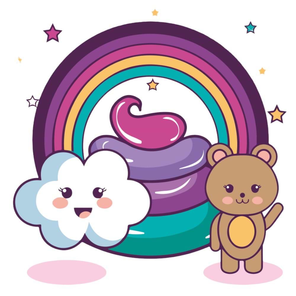 Картина за номерами Strateg Хмаринка з веселкою та ведмежам 30х30 см (ES-0838)