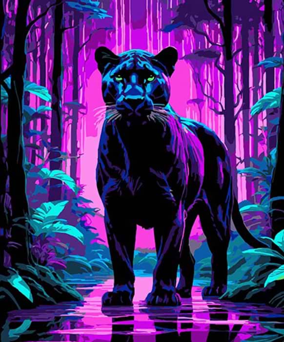 Картина за номерами Strateg Пантера серед фіолетових тропіків 30х40 см (FH-12)