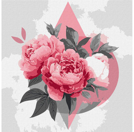 Картина за номерами Ideyka Геометричні фігури з півоніями 30х30 см (KHO3315)