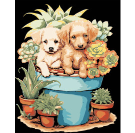 Все про Картина за номерами Strateg Цуценяти на чорному фоні 40х50 см (AH1192-16)
