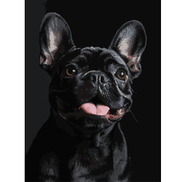 Картина за номерами Strateg Французький чорний бульдог на чорному фоні 30х40 (FH-32)