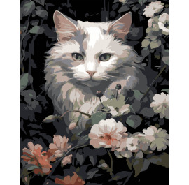 Все про Картина за номерами Strateg Кіт у квітах на чорному фоні 40х50 см (AH1191-17)