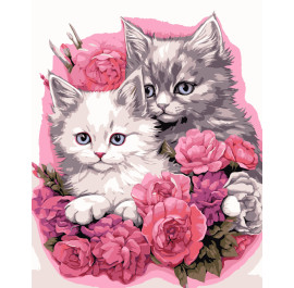 Картина за номерами Strateg Кошенята в квітах на чорному фоні 40х50 см (AH1189-16)